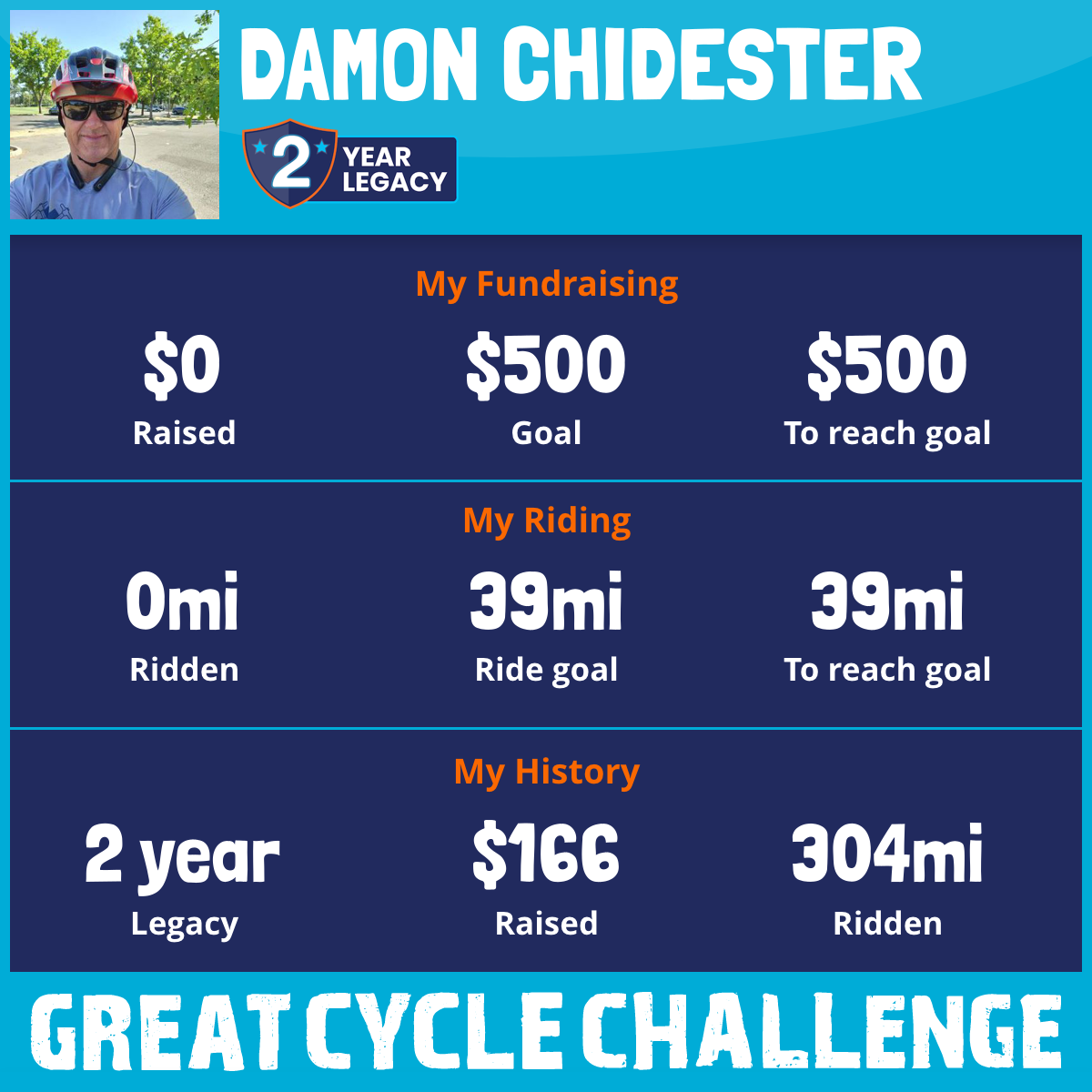 I am riding 39 mi for my loved one, Trisha. Please sponsor me and support my challenge to fight kids' cancer and save little lives.