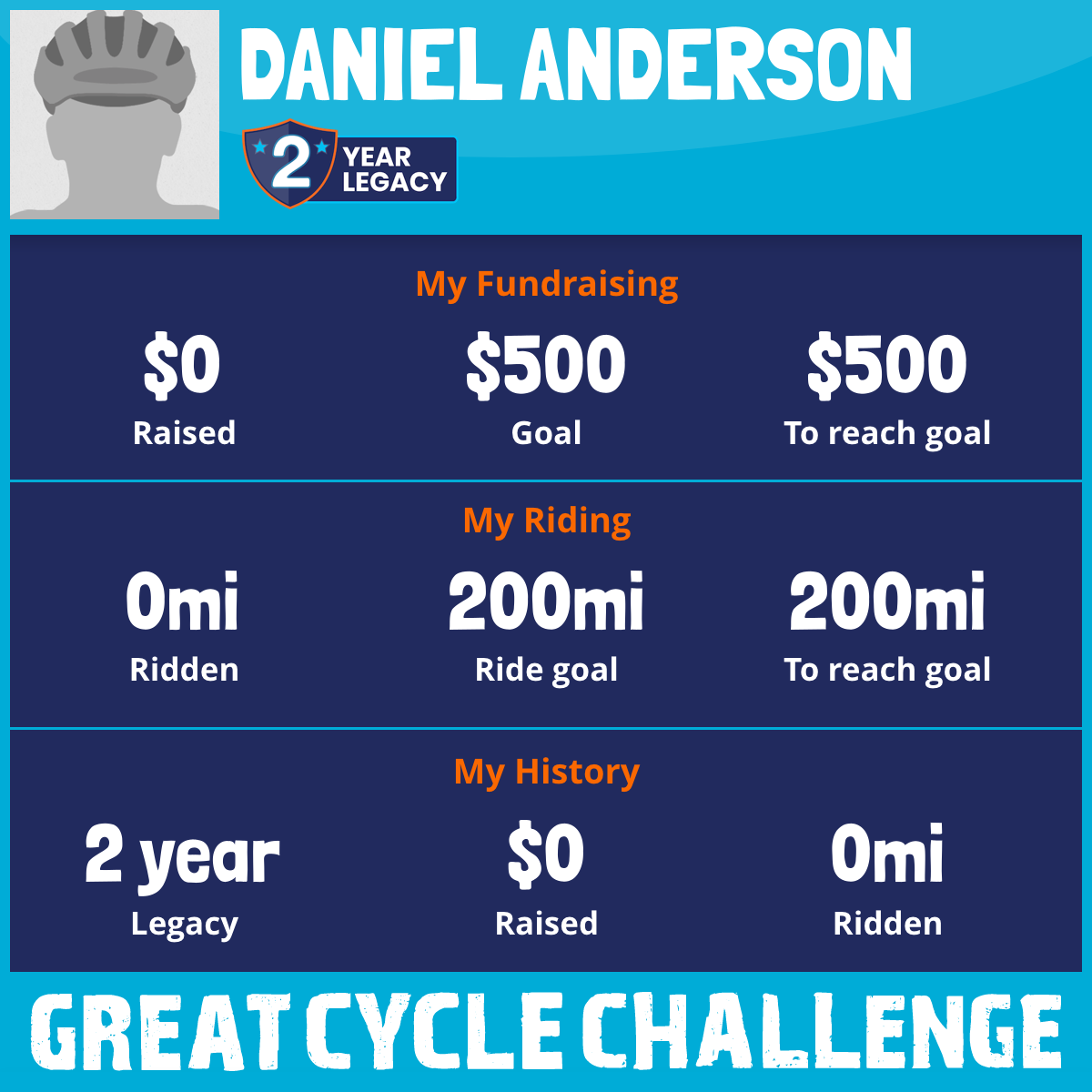 I am riding 200 mi in memory of my daughter, Daniel. Please sponsor me and support my challenge to fight kids' cancer and save little lives.