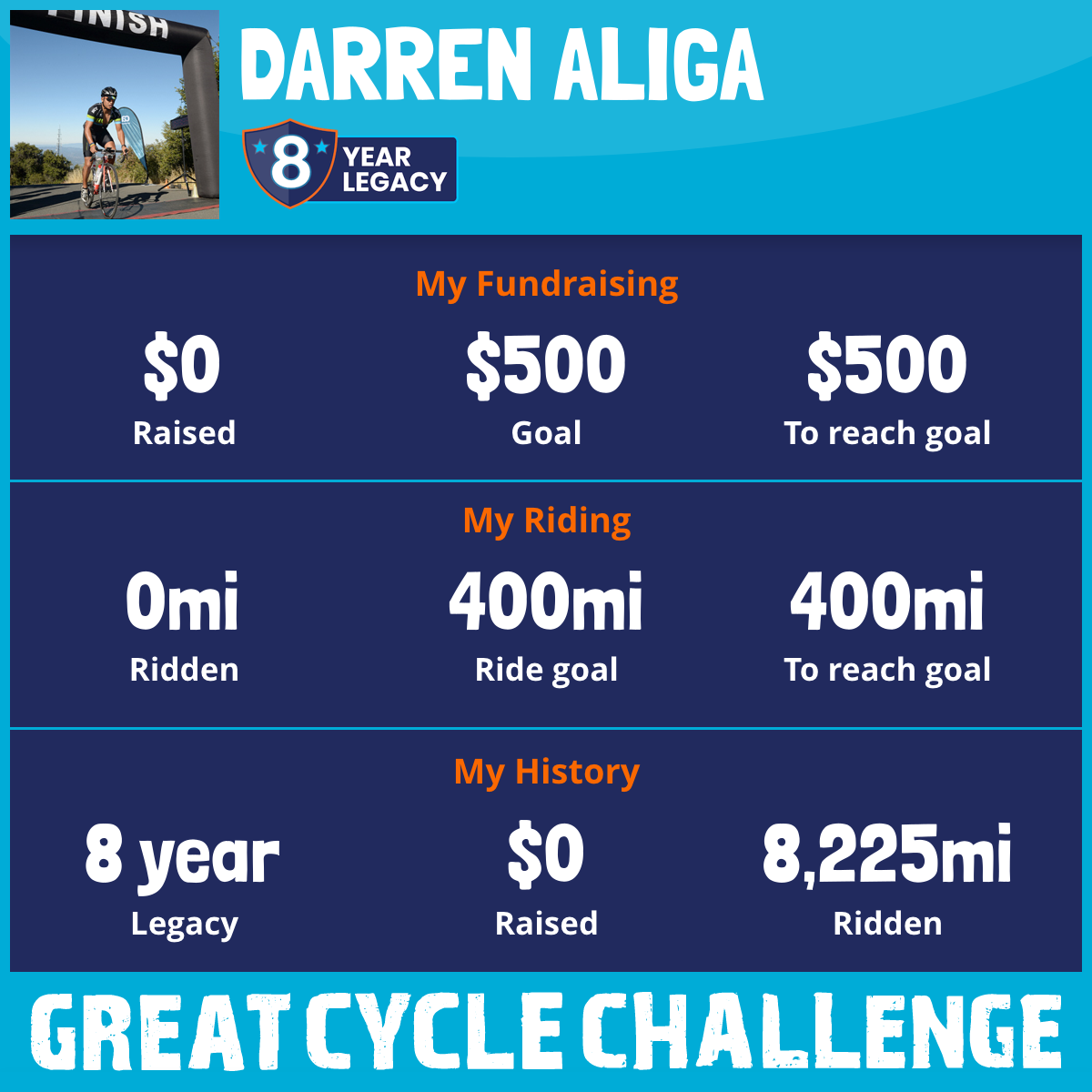 I am riding 400 mi for MRGA. Please sponsor me and support my challenge to fight kids' cancer and save little lives.