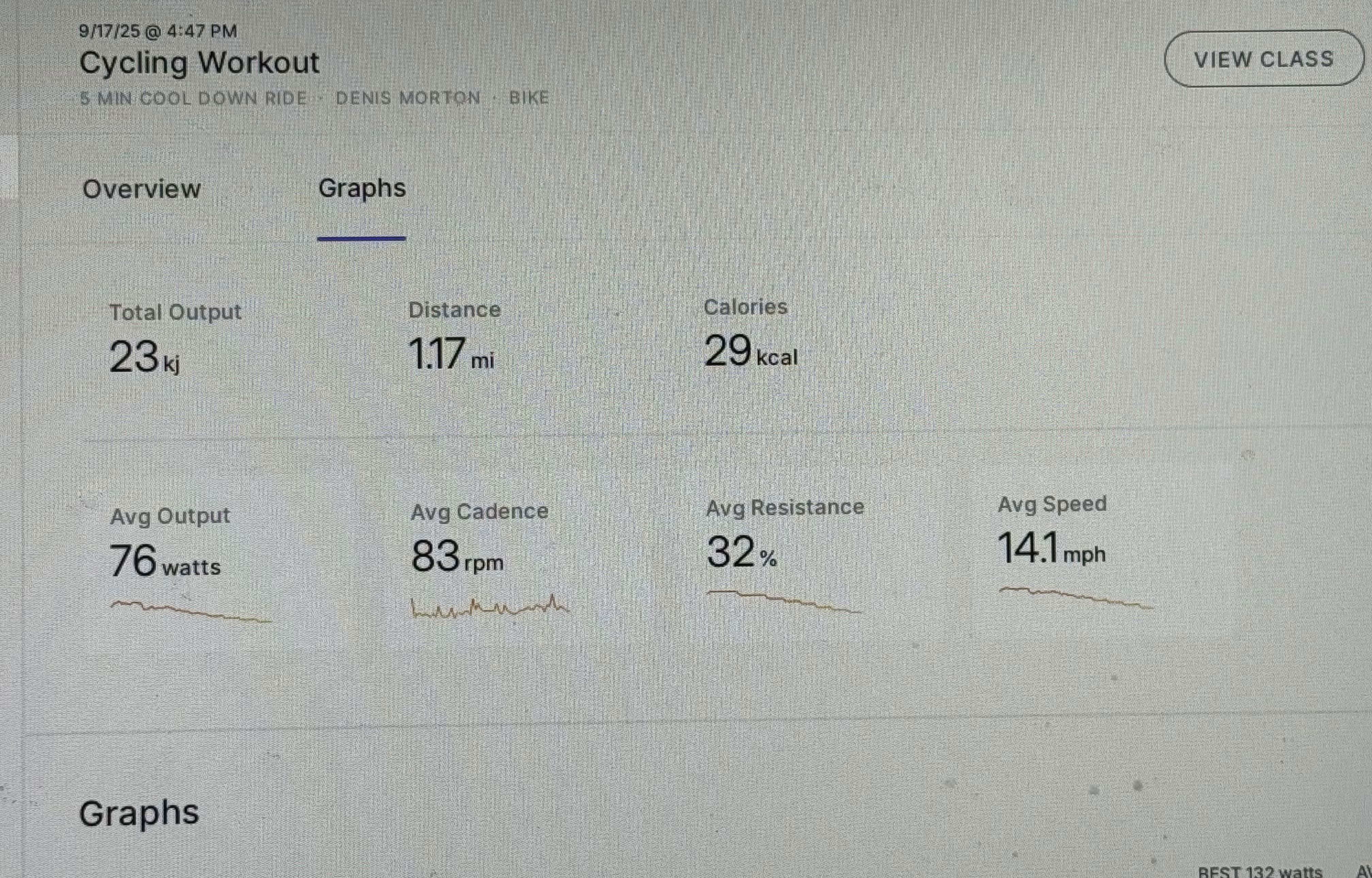 1.2 mi ride - 5 min cool down ride - Wednesday, September 17, 2025