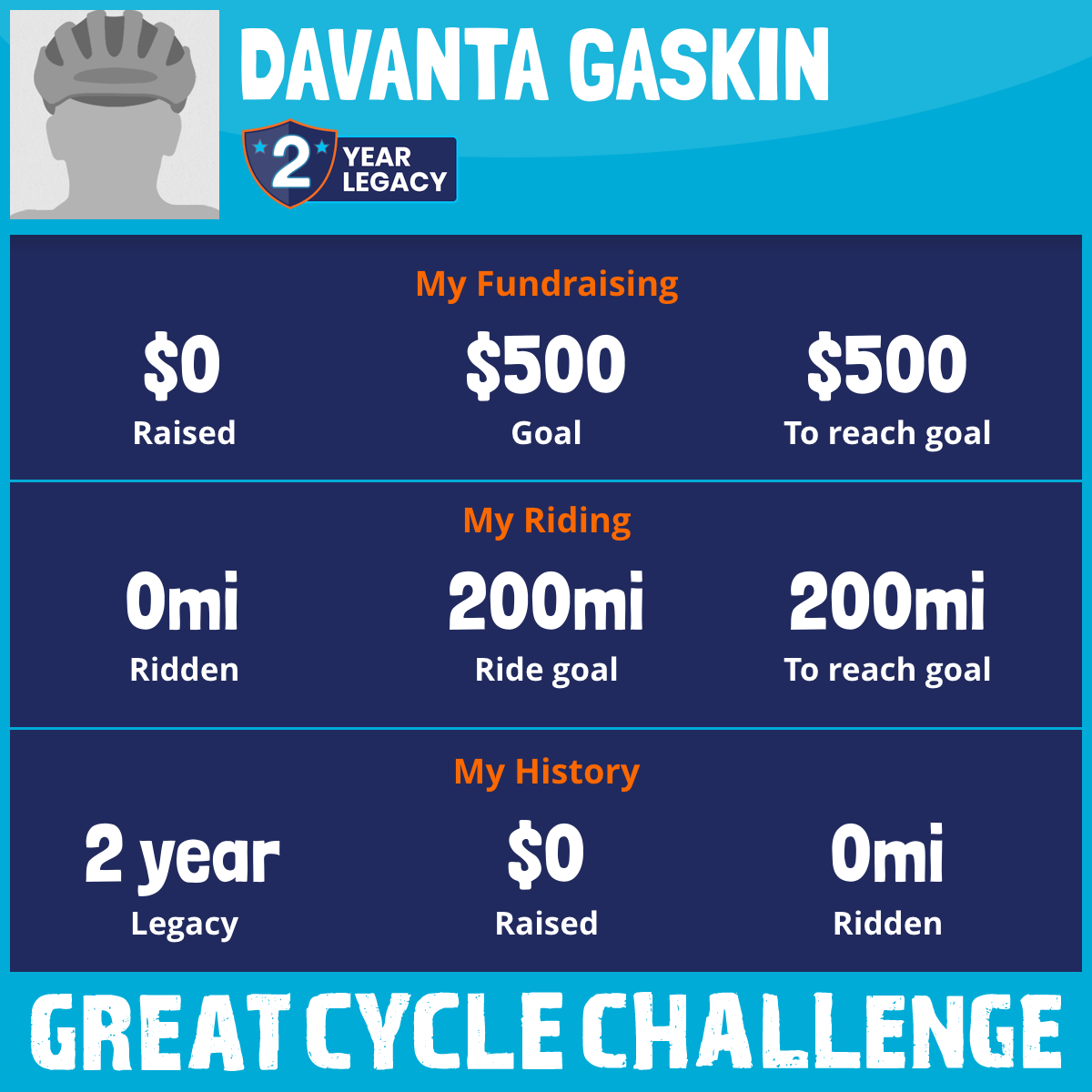 I am riding 200 mi for Doretha. Please sponsor me and support my challenge to fight kids' cancer and save little lives.