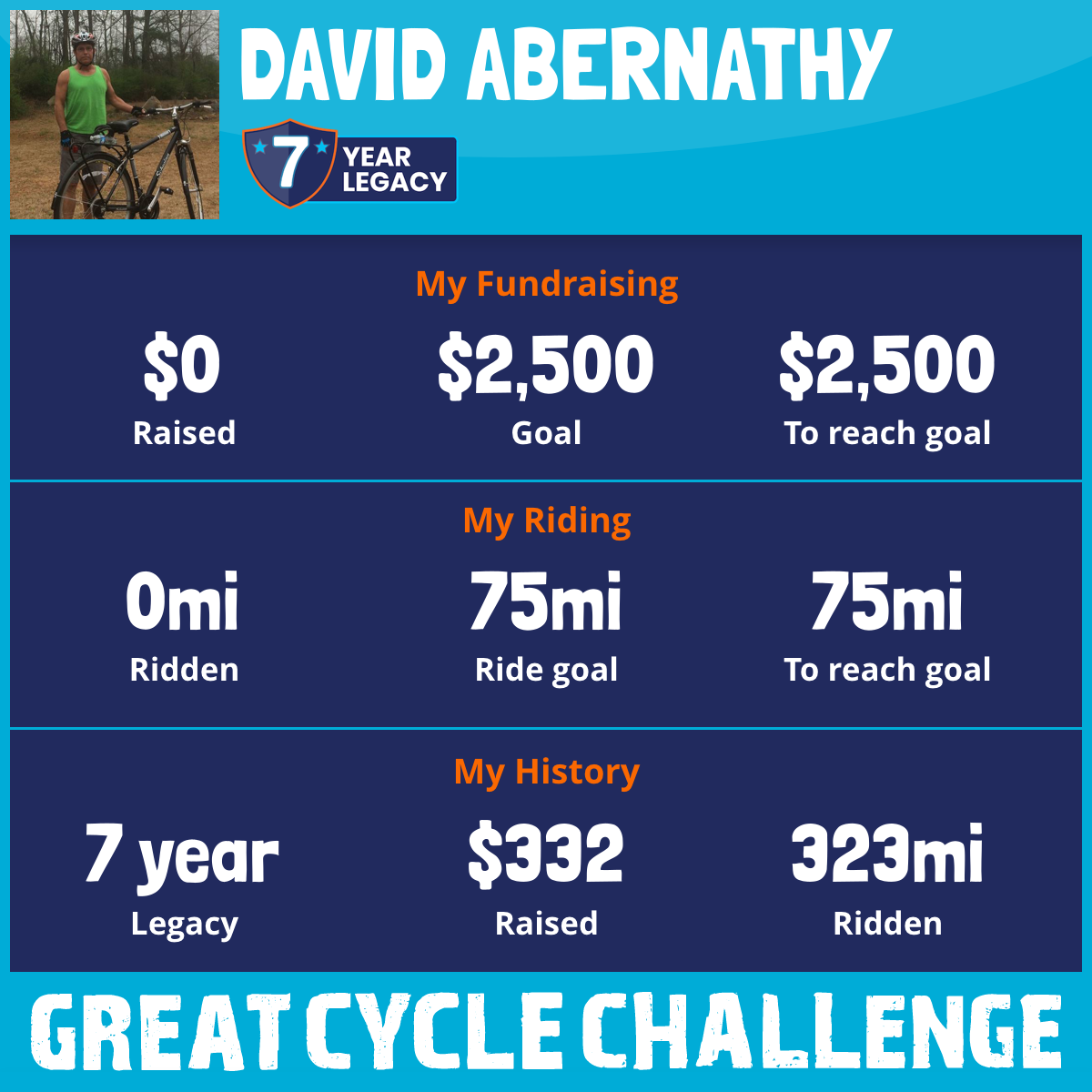 I am riding 75 mi in memory of Cayden. Please sponsor me and support my challenge to fight kids' cancer and save little lives.
