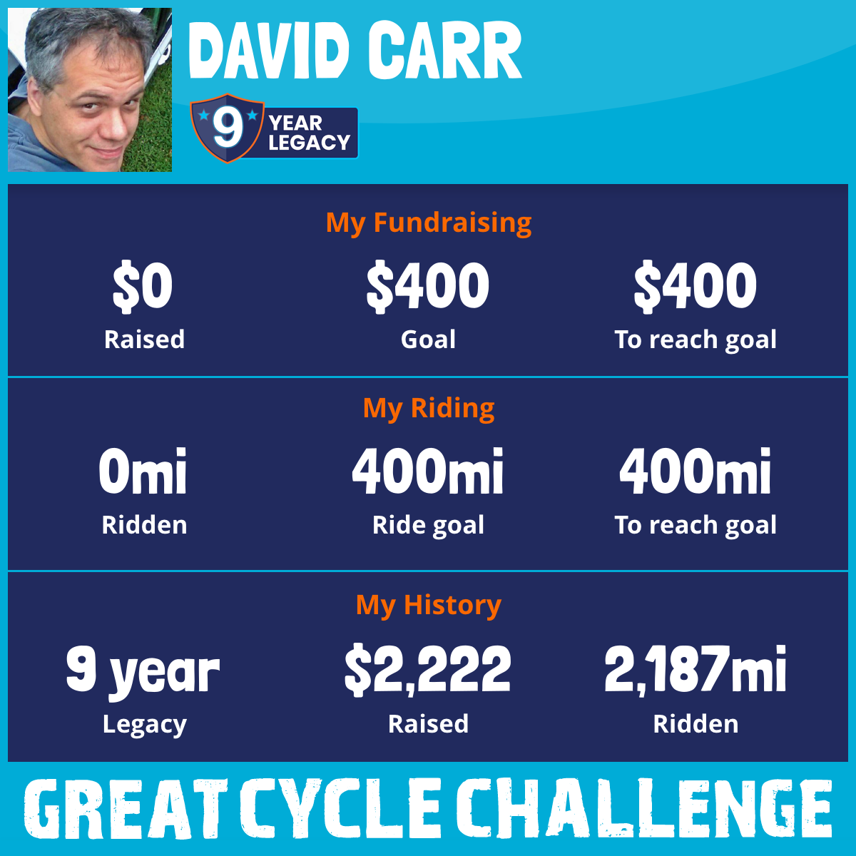 I am riding 500 mi in memory of Billy Carr. Please sponsor me and support my challenge to fight kids' cancer and save little lives.