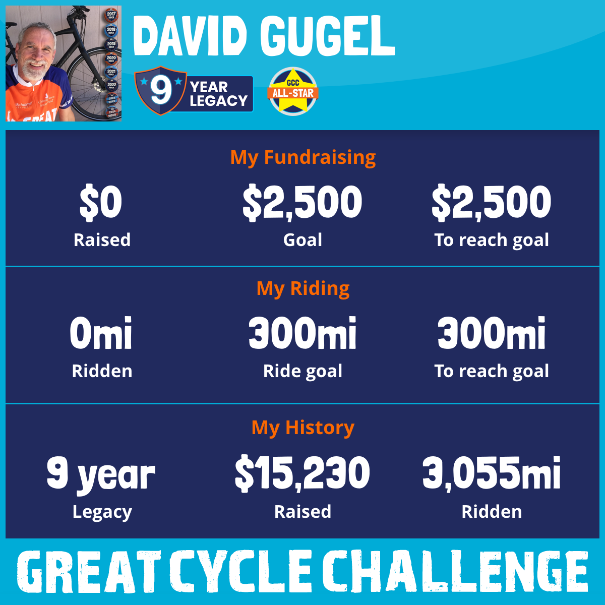 This is my 9th year of riding in the Great Cycle Challenge and I thank those who have pitched in, in previous years to support this worthwhile cause of fighting childhood cancer. This year I’m riding for Owen Klemm, in June of 2024, just after celebrating his 2nd birthday, Owen was diagnosed with high-risk neuroblastoma, a rare and aggressive form of cancer. His diagnosis turned the Klemm family’s world upside down, as they learned the cancer had metastasized throughout his body. He’s fighting hard and enduring aggressive treatments and will be treated again this month to more aggressive radiation treatment. My ride may not benefit him directly, but his fight is reason enough for me to ride and bring attention to his plight and those of children like him. All proceeds from your contributions go to the Children’s Cancer Research fund and all donations are tax deductible. Children should not have to go through this, their parents shouldn’t have to go through watching their child struggle and suffer. Please help by donating - a little goes a long way. Thank you!