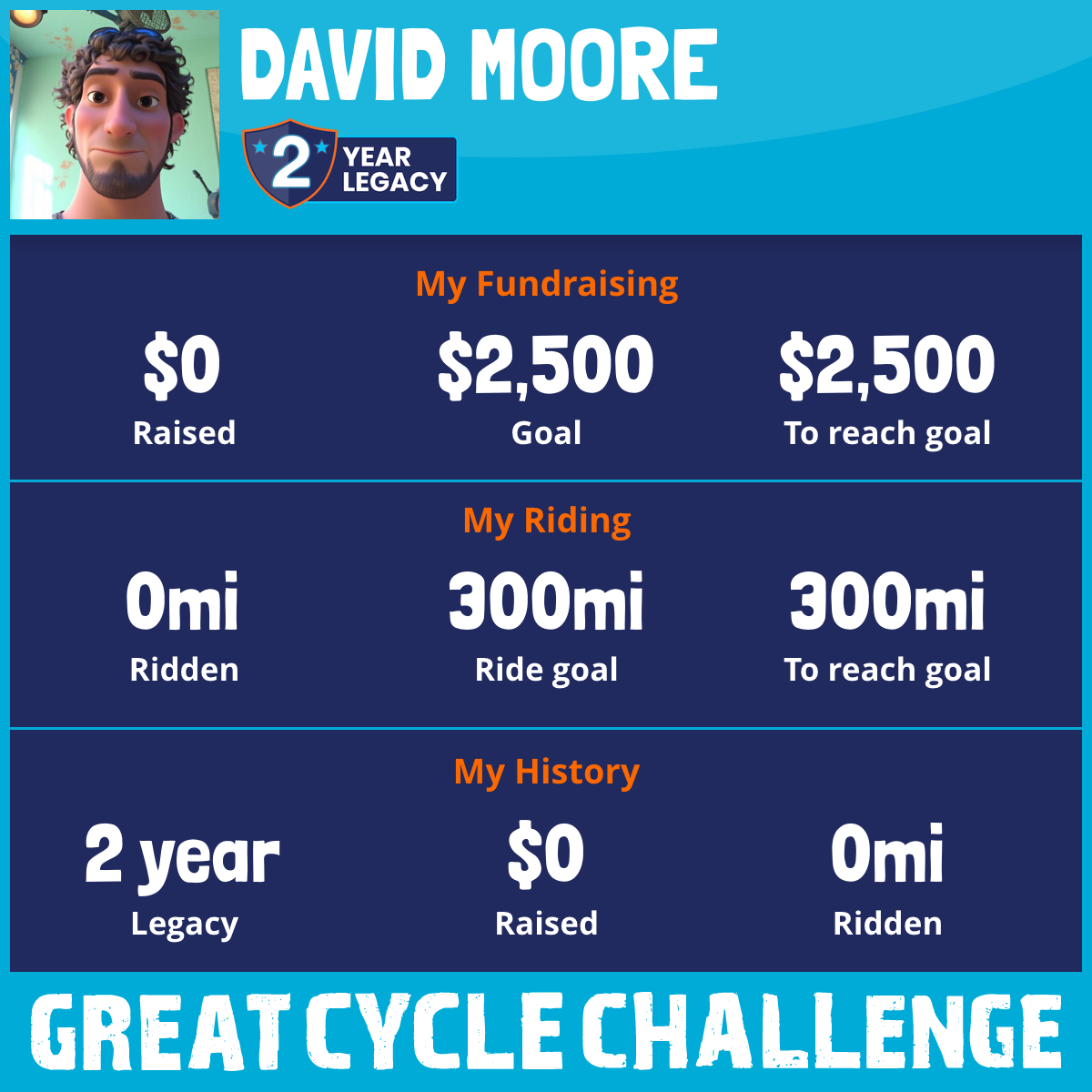 I am riding 300 mi in memory of Danny Butler n Sarah Butler. Please sponsor me and support my challenge to fight kids' cancer and save little lives.