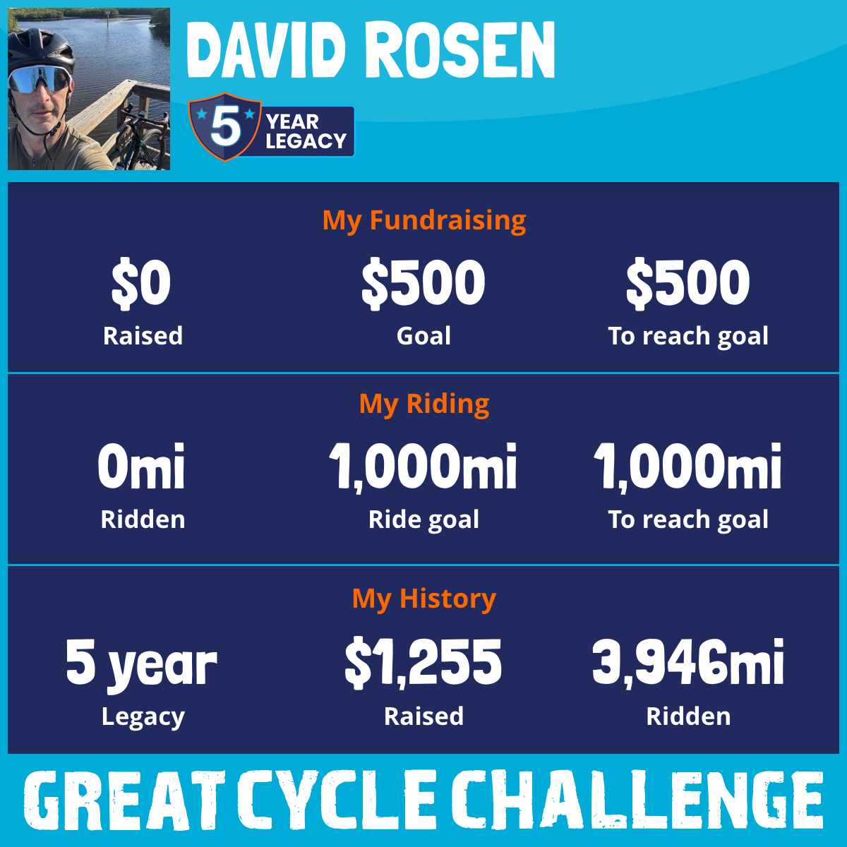 I am riding 1,000 mi for All those that can’t ride. Please sponsor me and support my challenge to fight kids' cancer and save little lives.