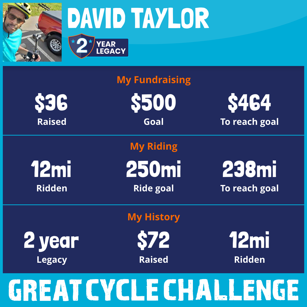 I've Ridden 12.1 mi My goal is 250 mi