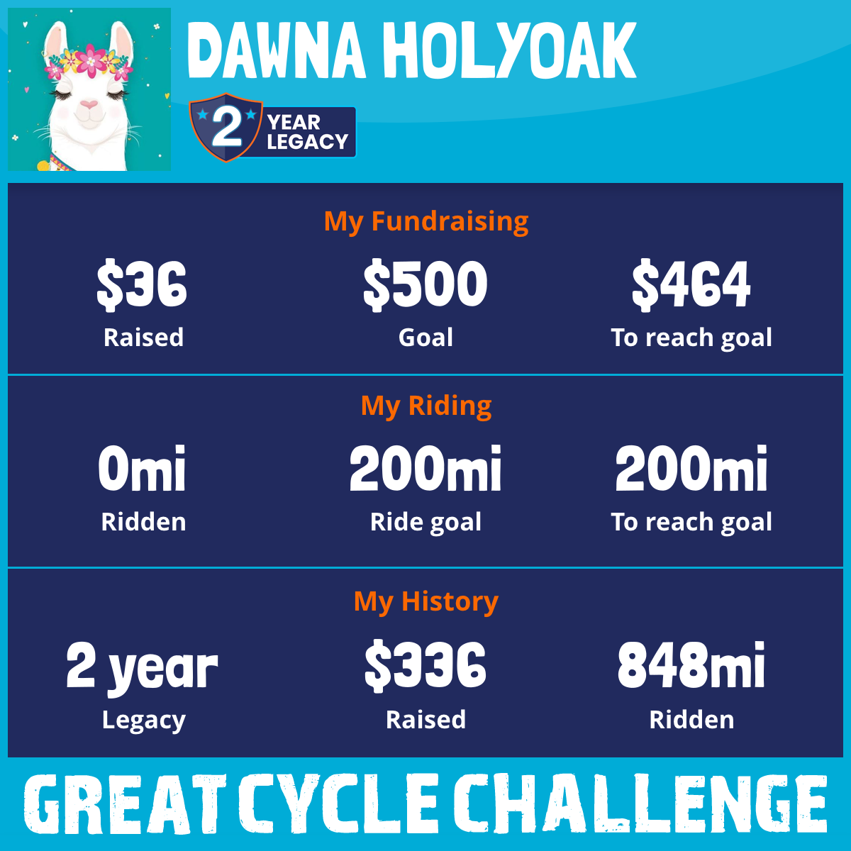 I am riding 200 mi for my sister, Pauline Mead. Please sponsor me and support my challenge to fight kids' cancer and save little lives.