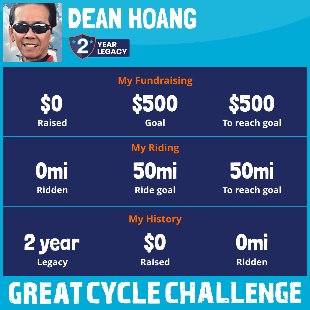 I am riding 50 mi in memory of Lam Phu. Please sponsor me and support my challenge to fight kids' cancer and save little lives.