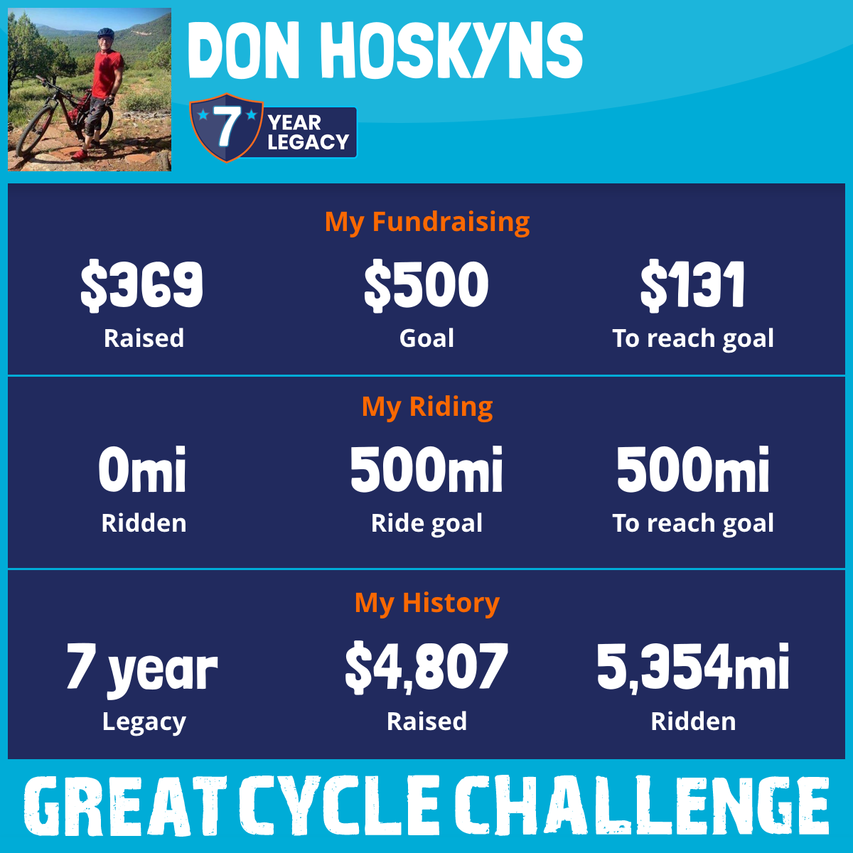 1,237 mi Ridden$1,062 Raised2023