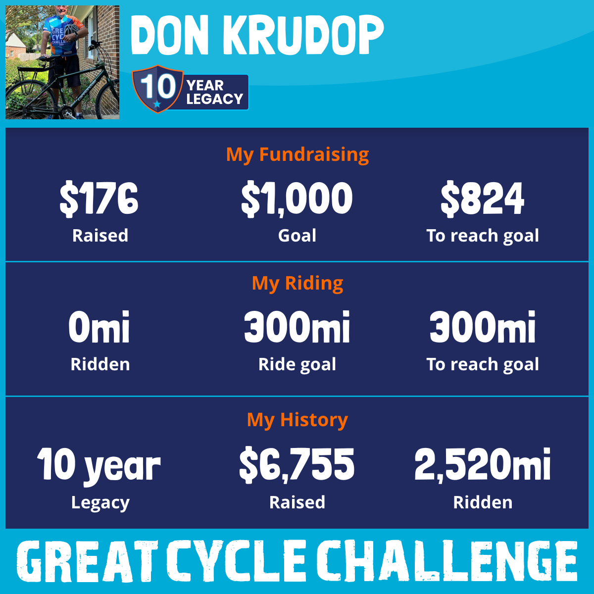 294 mi Ridden$1,174 Raised2025