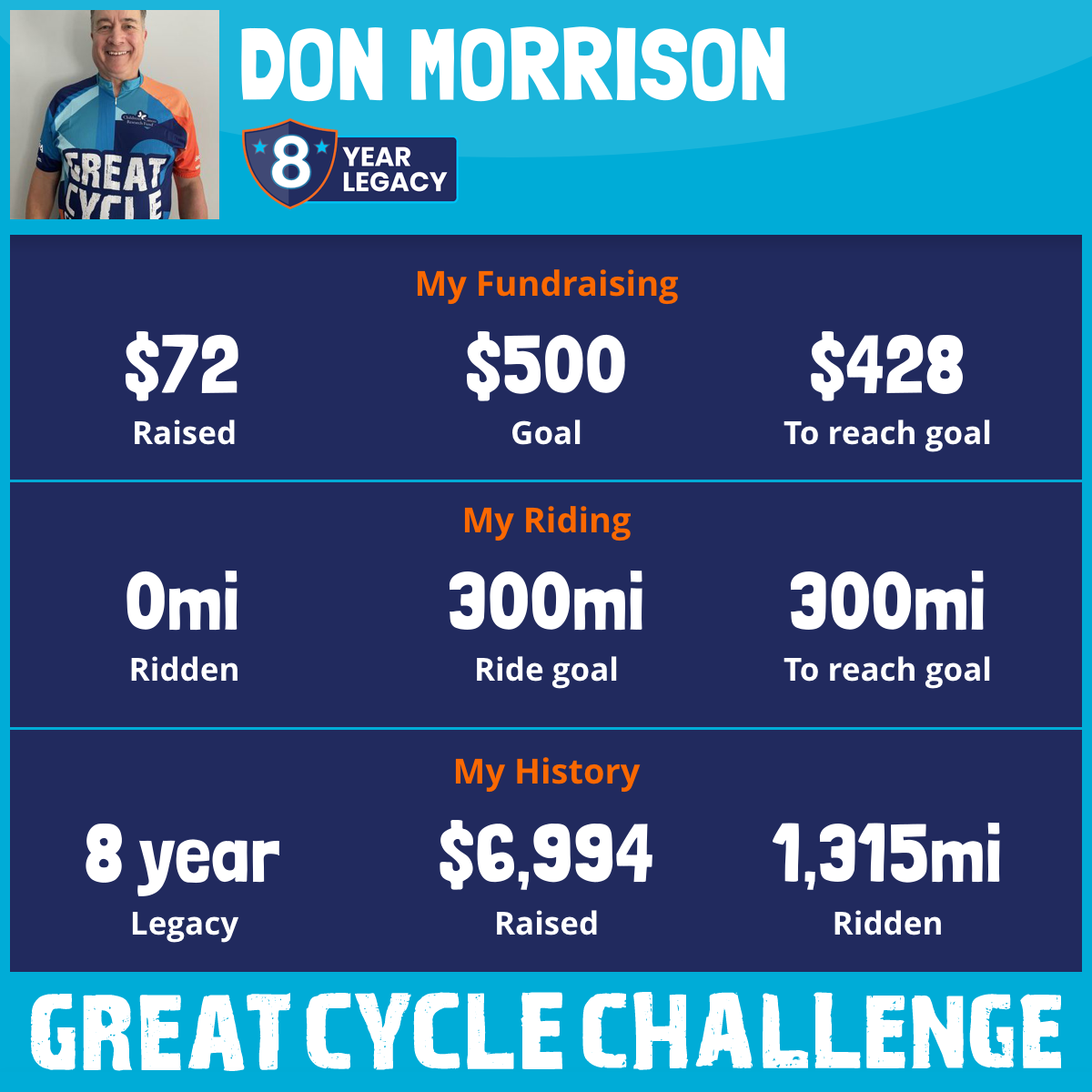 302 mi Ridden$1,717 Raised2023