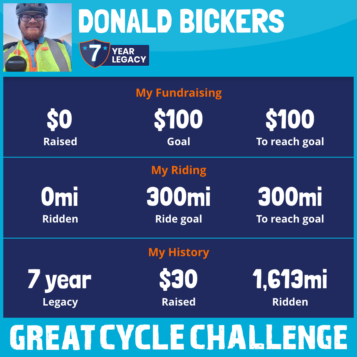 I am riding 300 mi for Dad. Please sponsor me and support my challenge to fight kids' cancer and save little lives.