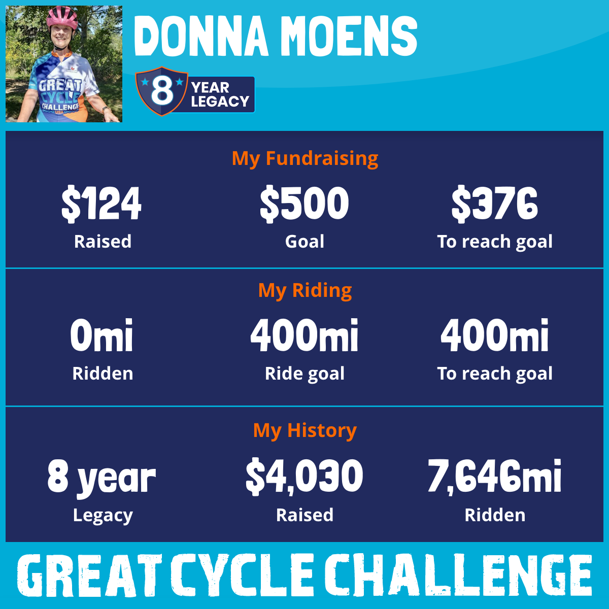 I am riding 400 mi for Lucia. Please sponsor me and support my challenge to fight kids' cancer and save little lives.
