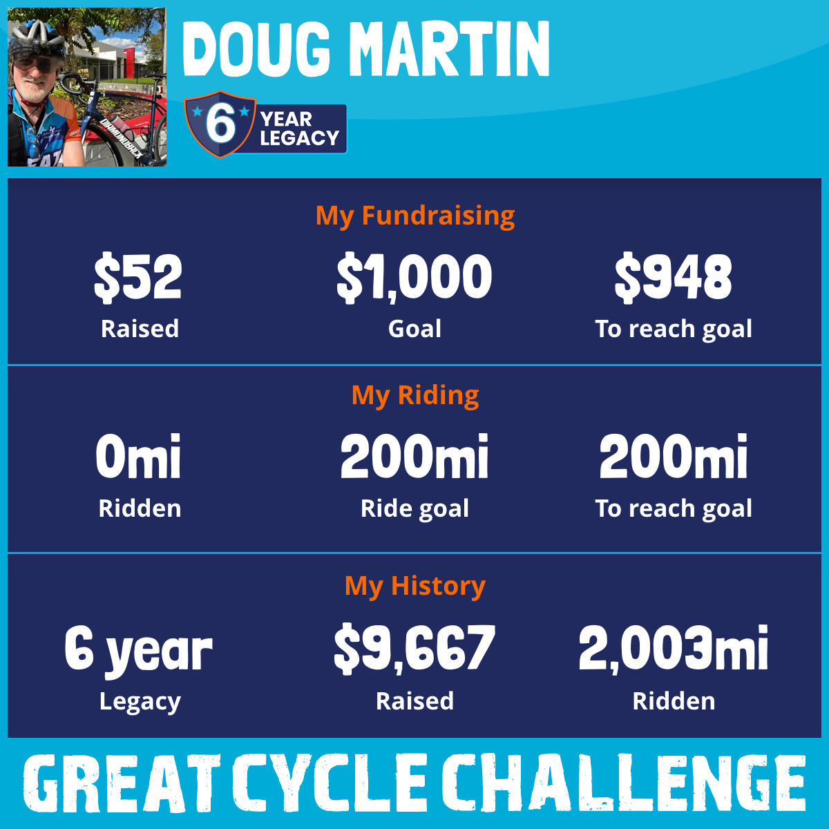370 mi Ridden$1,778 Raised2021