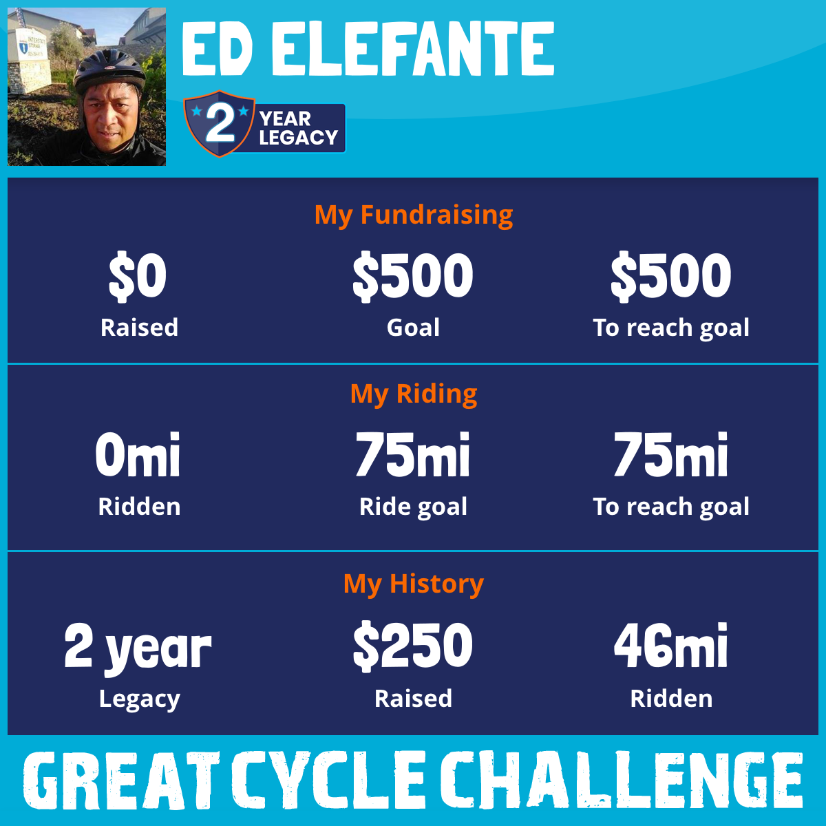 46 mi Ridden$250 Raised2021