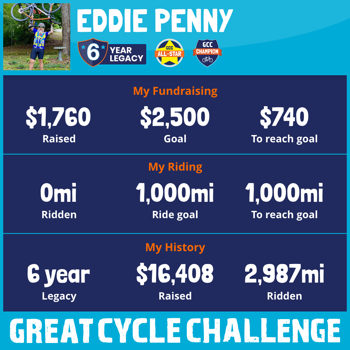 1,000 mi Ridden$9,091 Raised2026