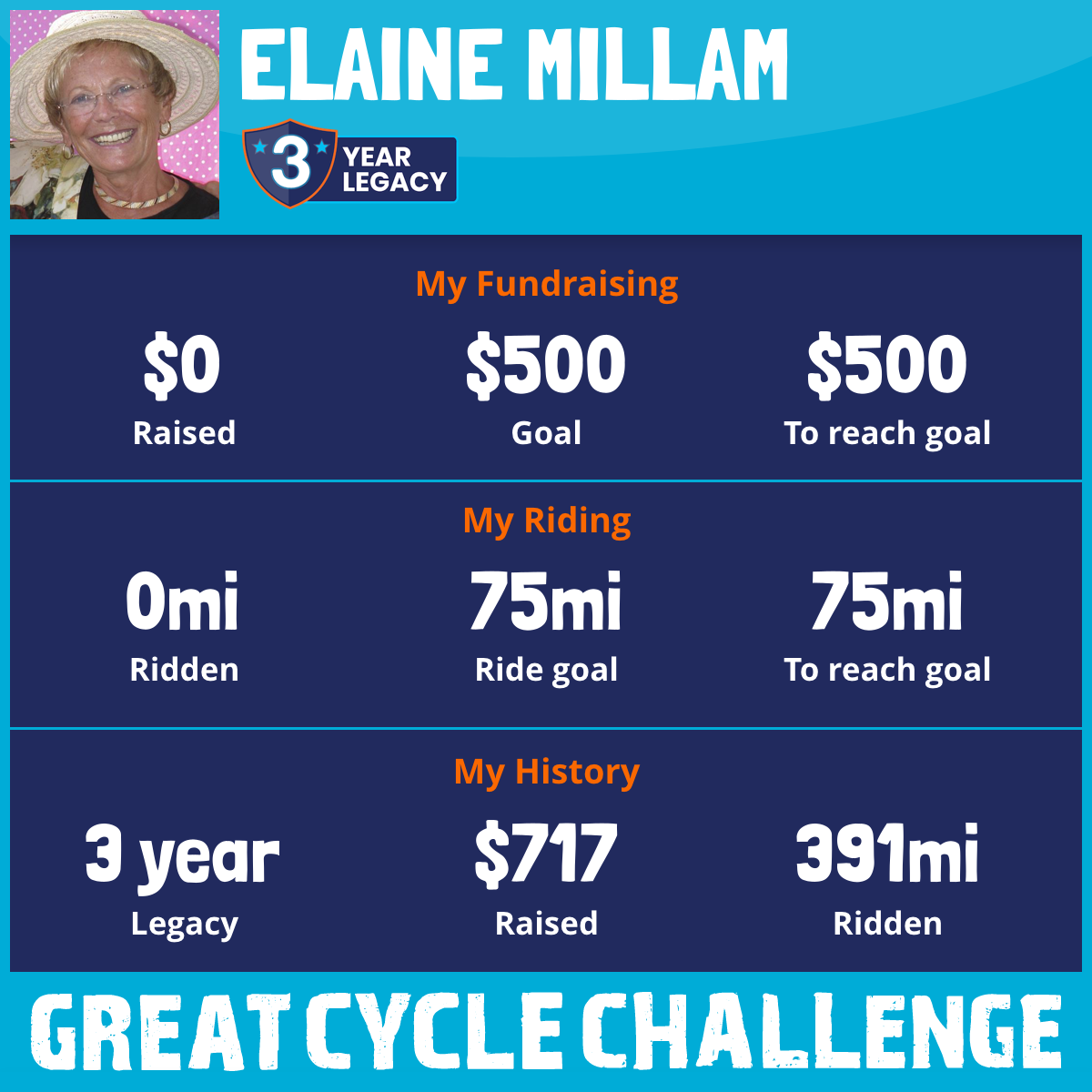 I am riding 75 mi for Eila Howe. Please sponsor me and support my challenge to fight kids' cancer and save little lives.