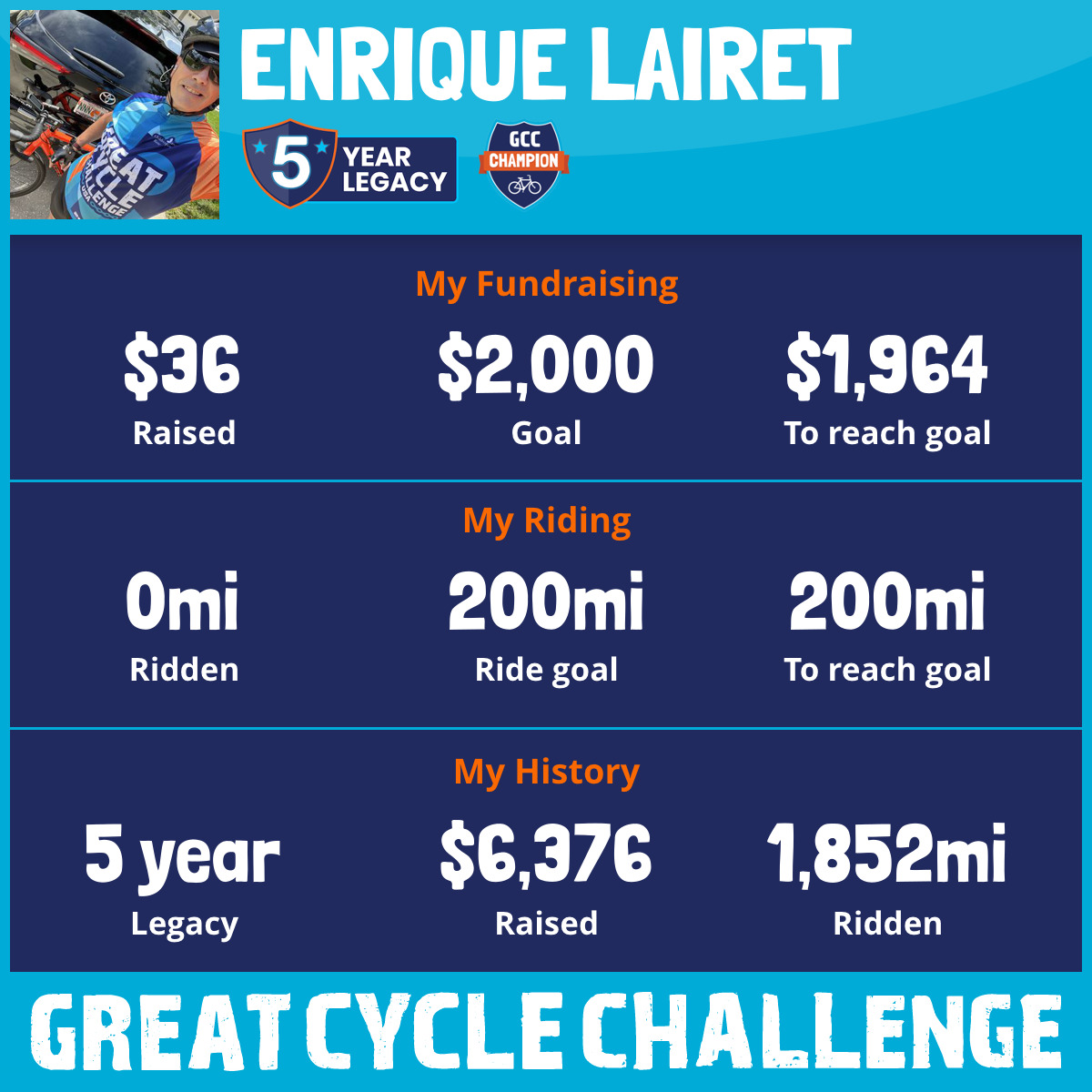619 mi Ridden$3,097 Raised2023