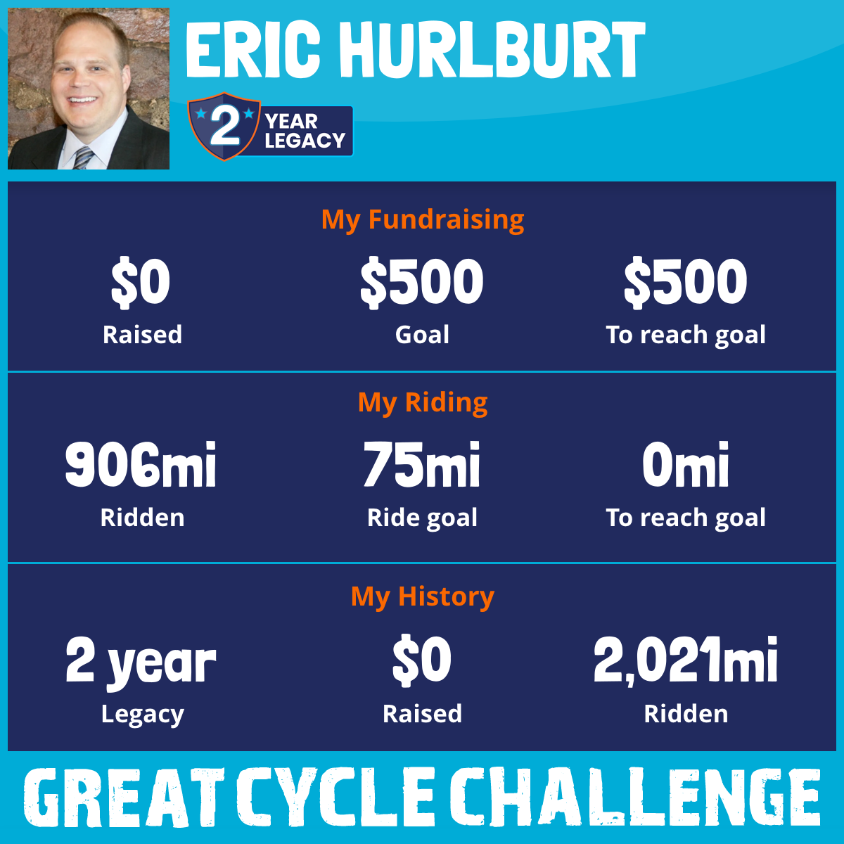 I am riding 75 mi for my loved one, Eric. Please sponsor me and support my challenge to fight kids' cancer and save little lives.