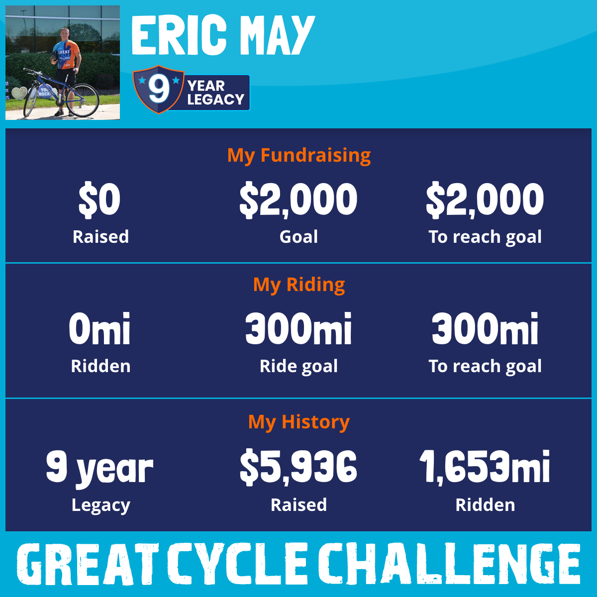300 mi Ridden$1,418 Raised2020