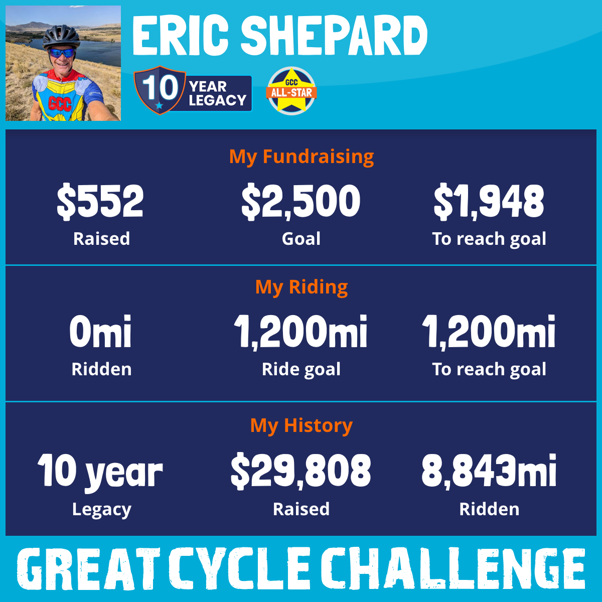 1,139 mi Ridden$4,615 Raised2023