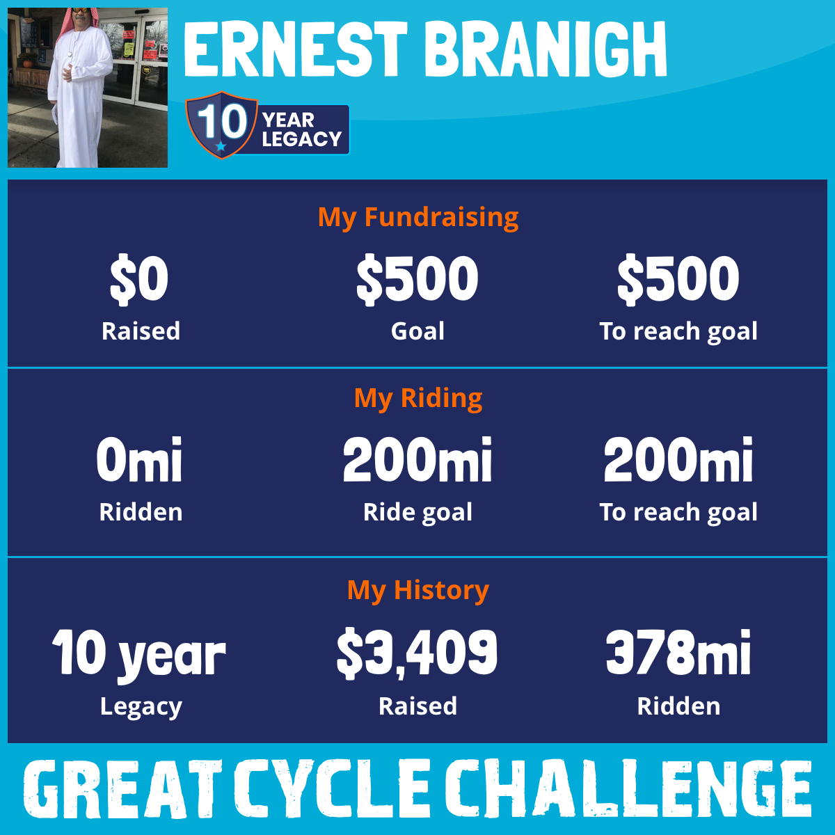 I am riding 200 mi for Pat Branigh. Please sponsor me and support my challenge to fight kids' cancer and save little lives.