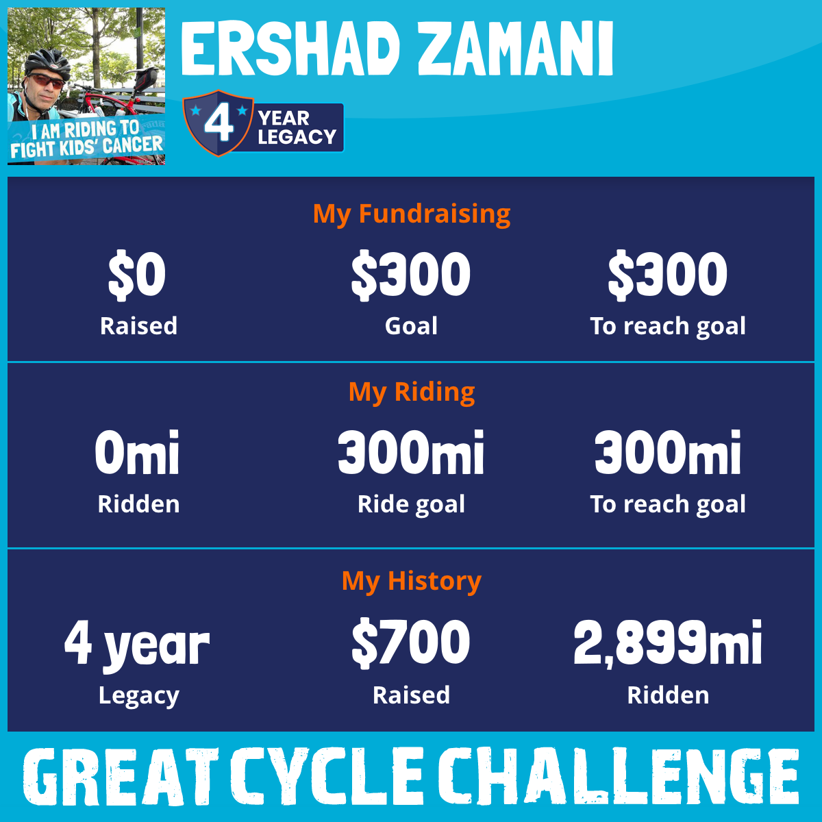 I am riding 300 mi to fight kids' cancer and save little lives. Please sponsor me to support my challenge!