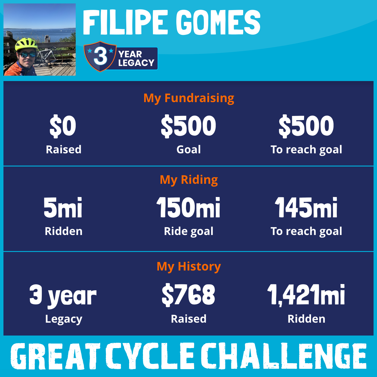 I am riding 150 mi for All the kids out there fighting cancer. Please sponsor me and support my challenge to fight kids' cancer and save little lives.