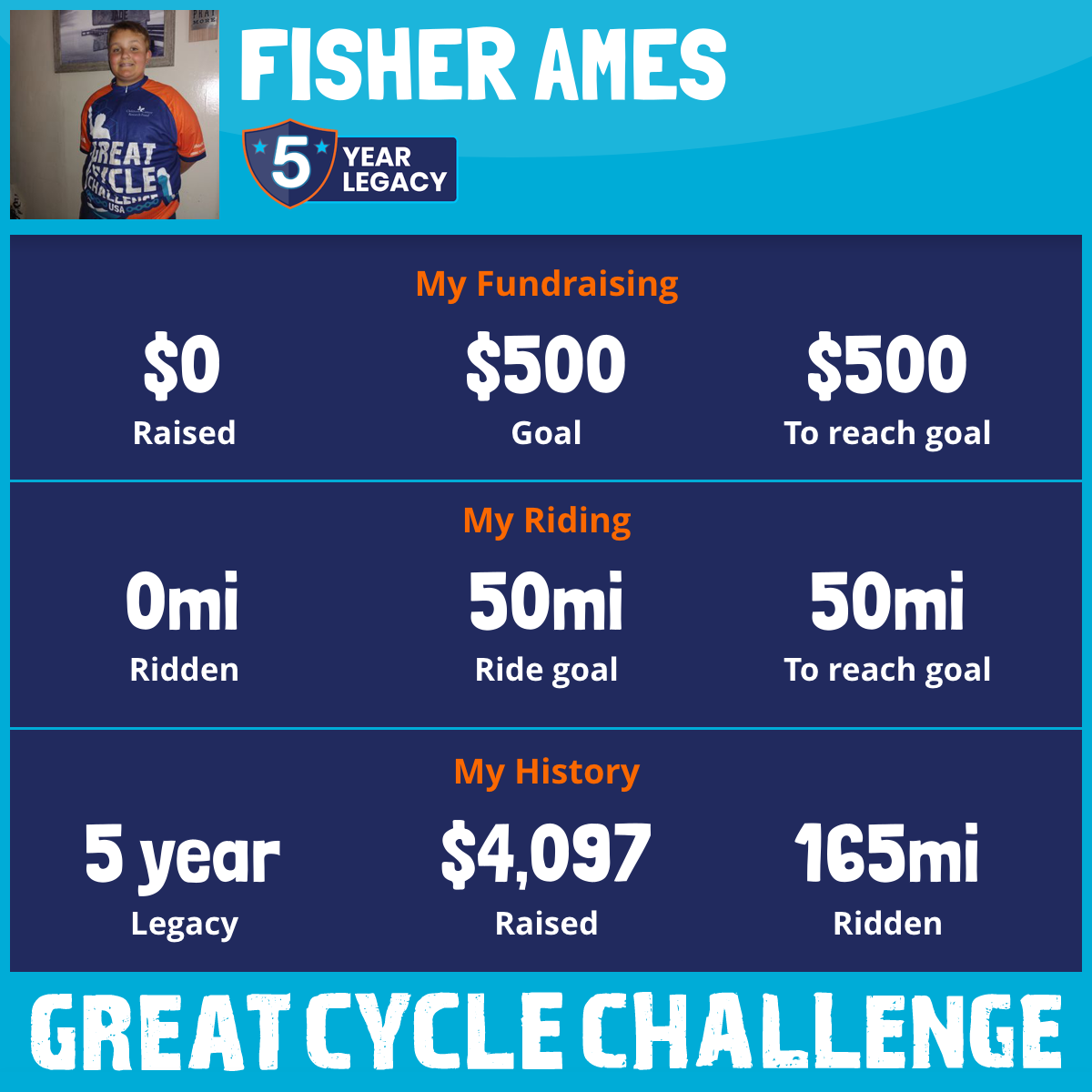 50 mi Ridden$1,075 Raised2021