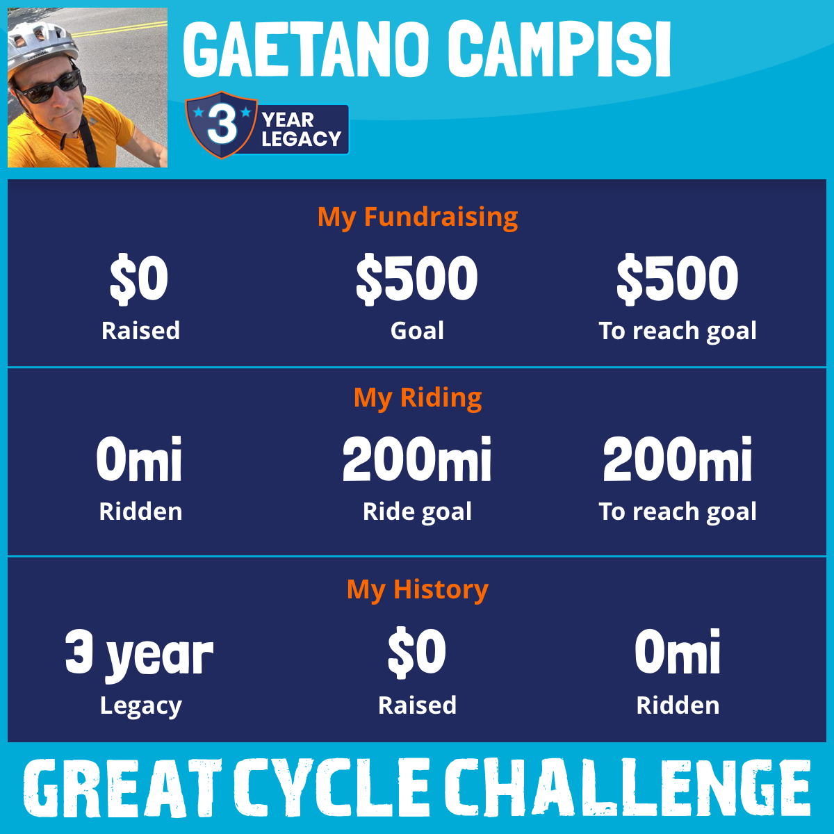 I am riding 200 mi in memory of Daisy campisi. Please sponsor me and support my challenge to fight kids' cancer and save little lives.