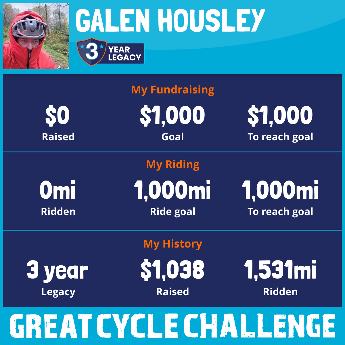 1,261 mi Ridden$1,038 Raised2023