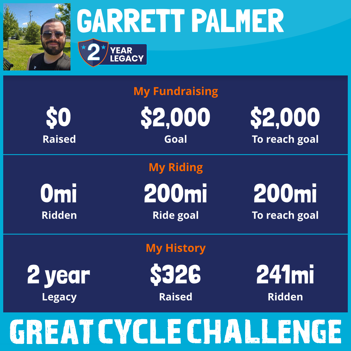 I am riding 200 mi in memory of my grandfather, Ralph Beisner. Please sponsor me and support my challenge to fight kids' cancer and save little lives.