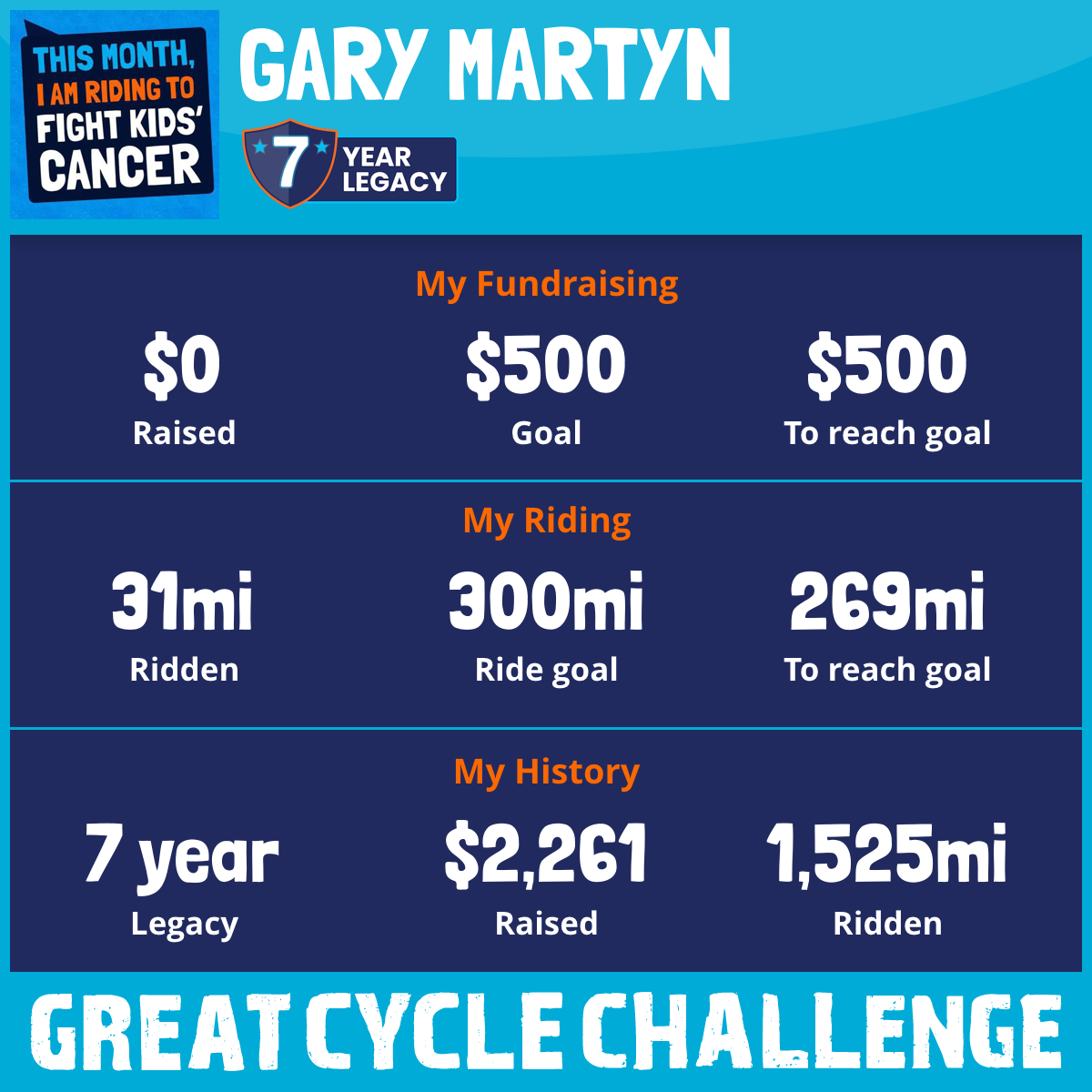 This, is my 7th year of participating in the Great Cycle Challenge to fight kids' cancer! Why? Because right now, cancer is the biggest killer of children from disease in the United States. Over 15,700 children are diagnosed every year, and sadly, 38 children die of cancer every week.