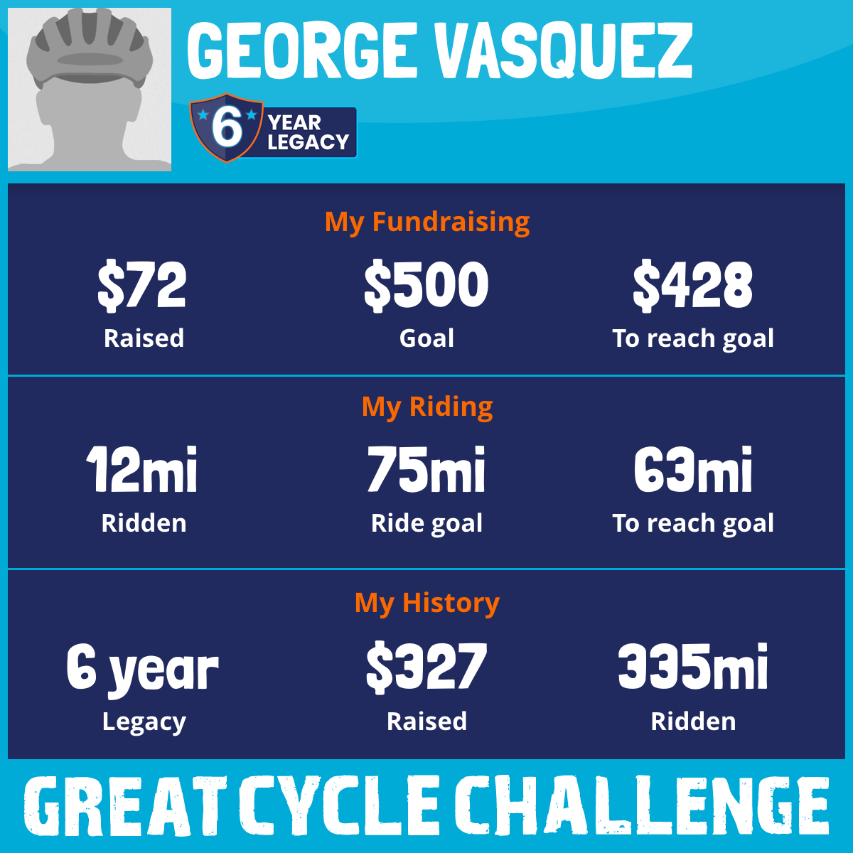 I am riding 75 mi in memory of Nellie Vasquez & Paula Gonzales. Please sponsor me and support my challenge to fight kids' cancer and save little lives.