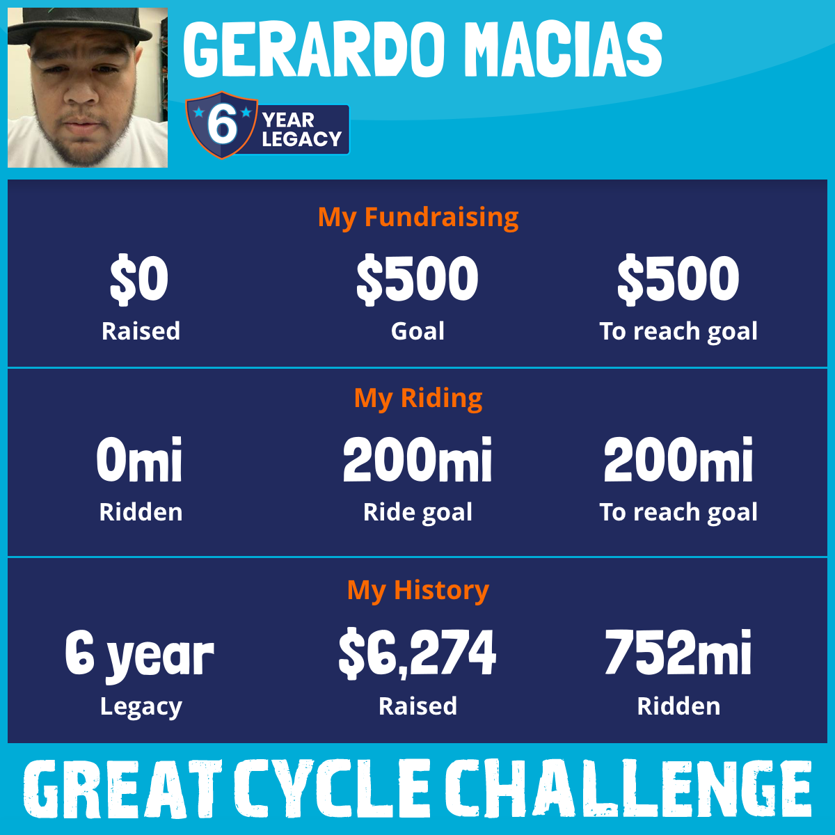 200 mi Ridden$1,080 Raised2021