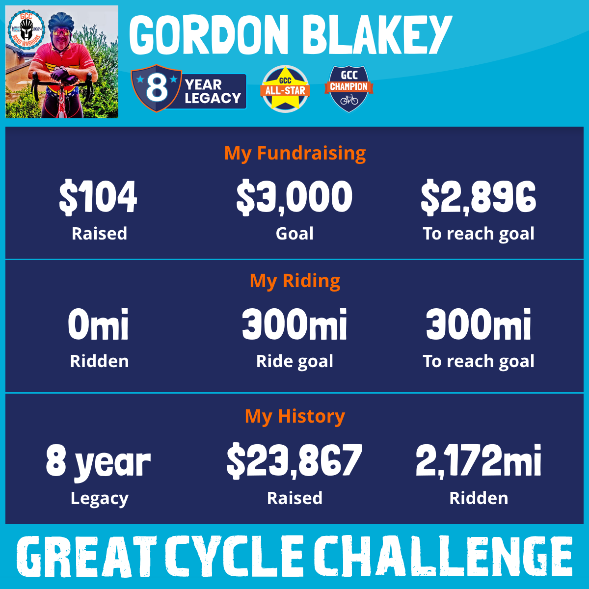 300 mi Ridden$3,472 Raised2023