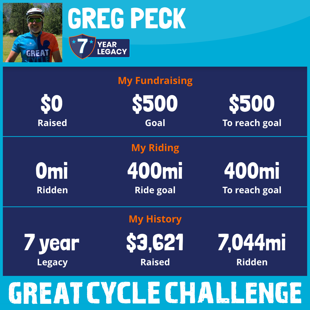 I am riding 400 mi for Mary ann Peck. Please sponsor me and support my challenge to fight kids' cancer and save little lives.