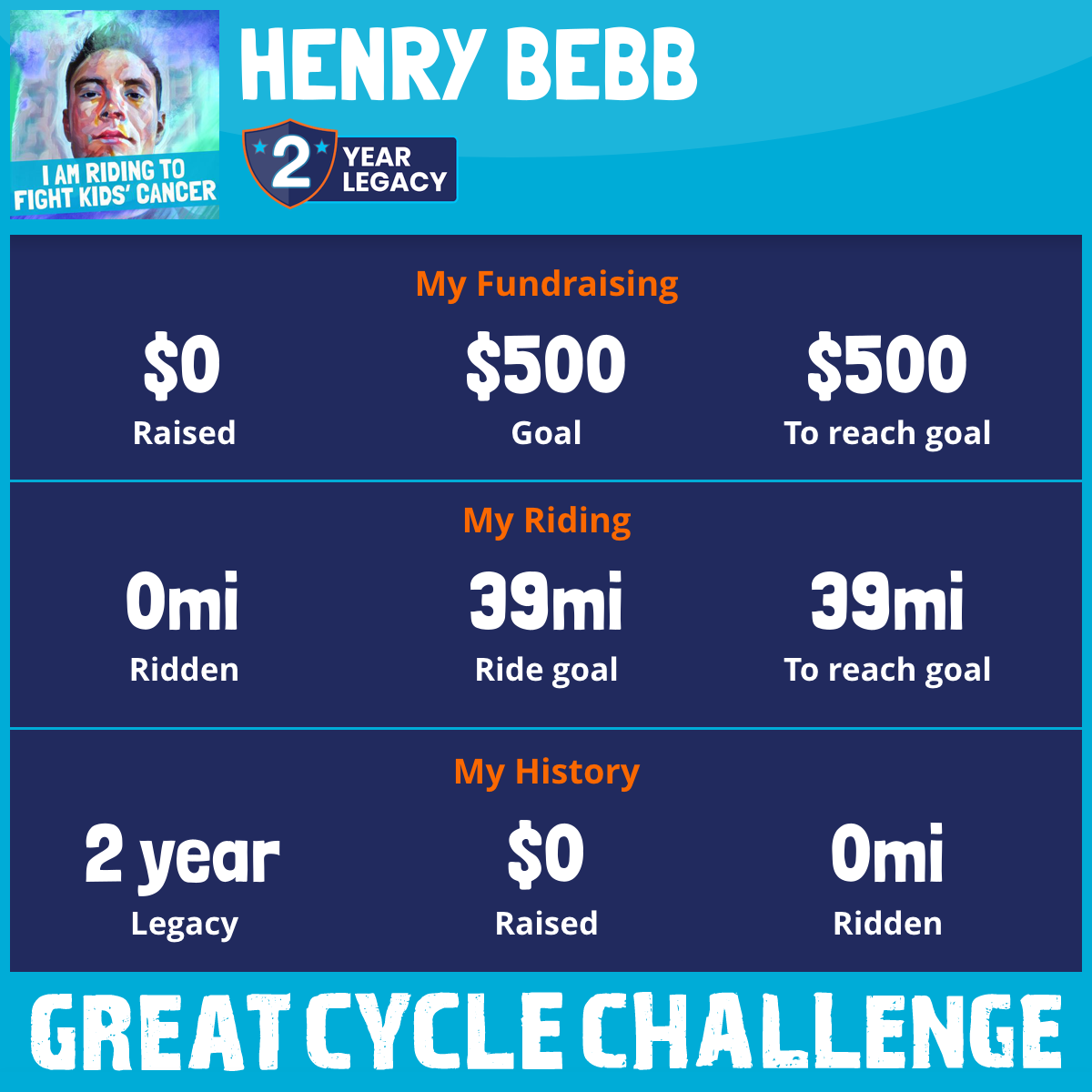I am riding 39 mi to fight kids' cancer and save little lives. Please sponsor me to support my challenge!