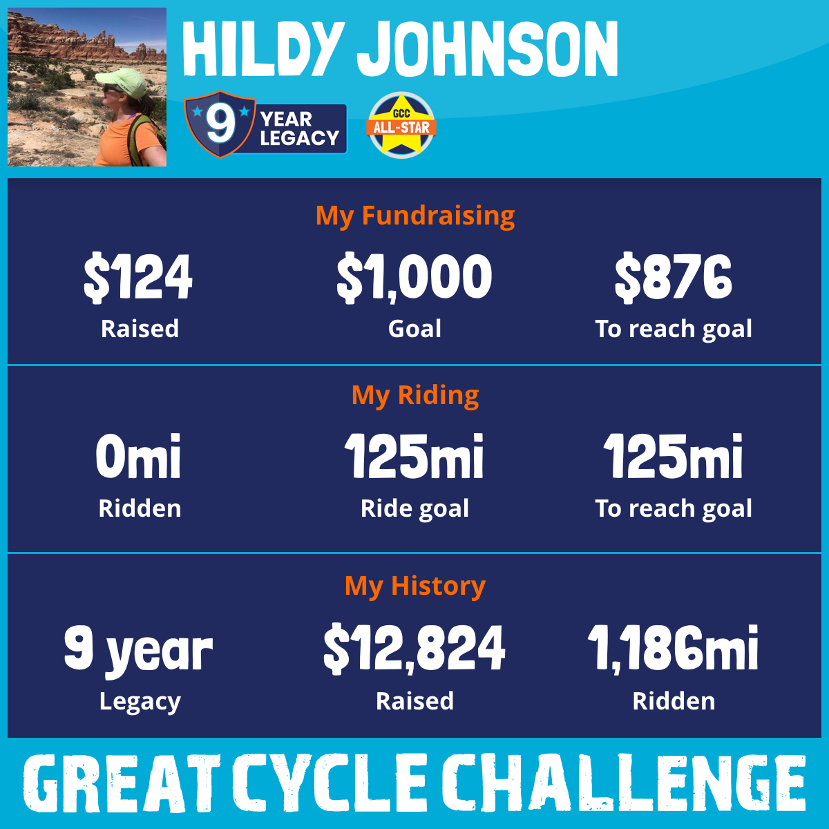 Every year that I have ridden for the Great Cycle Challenge I ride in honor of and in memory of many family and friends. Sadly, some may no longer be with us, some have conquered the disease and some are able to continue living with it due to advances made with research and medications. Please know any amount…large or small helps give these children a better chance of living life! Thank you!