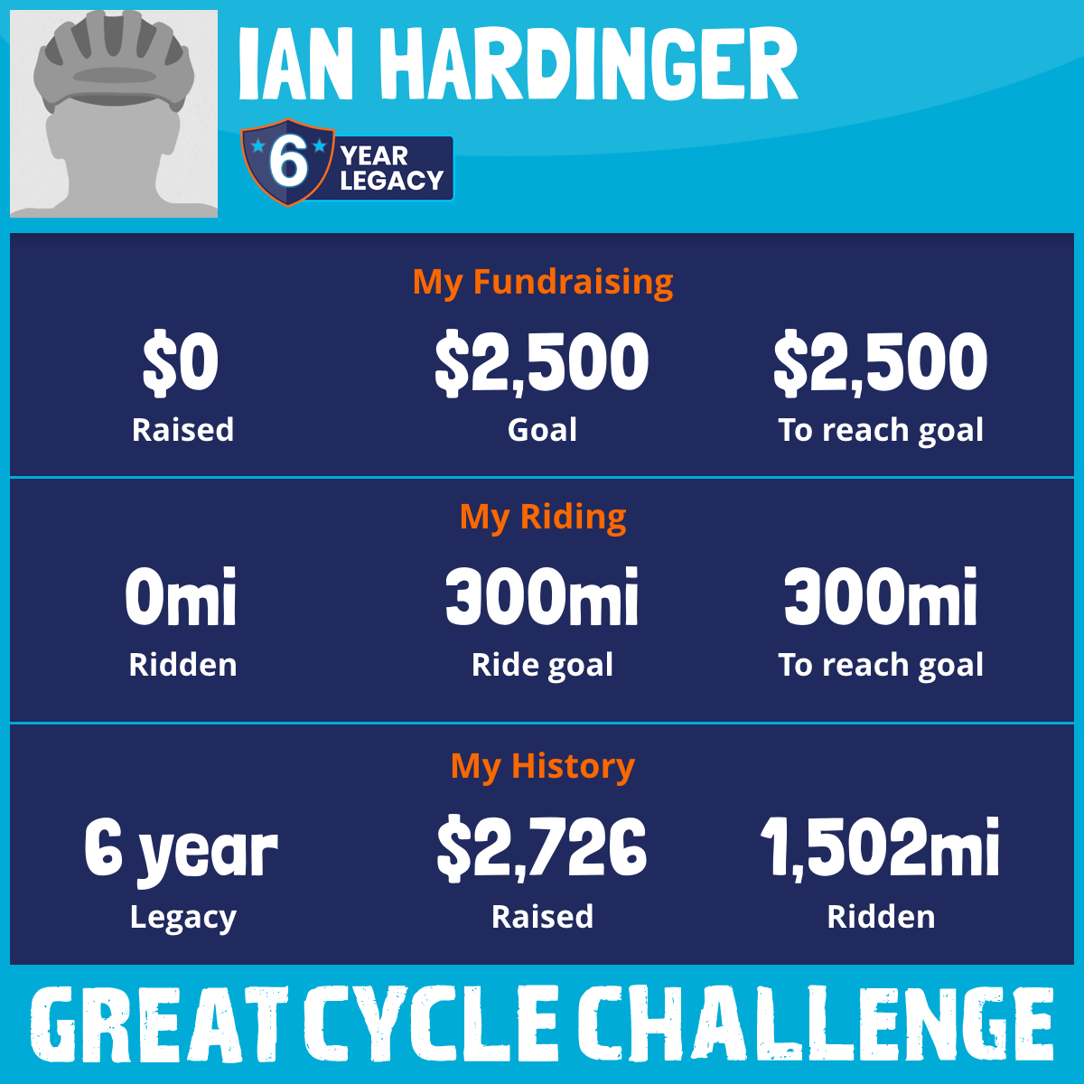 This September, I’m riding in the Great Cycle Challenge to fight kids’ cancer for the 6th consecutive year. Over that time, I’ve pedaled 1,568 miles and raised more than $2,380 to help children battling this devastating disease.