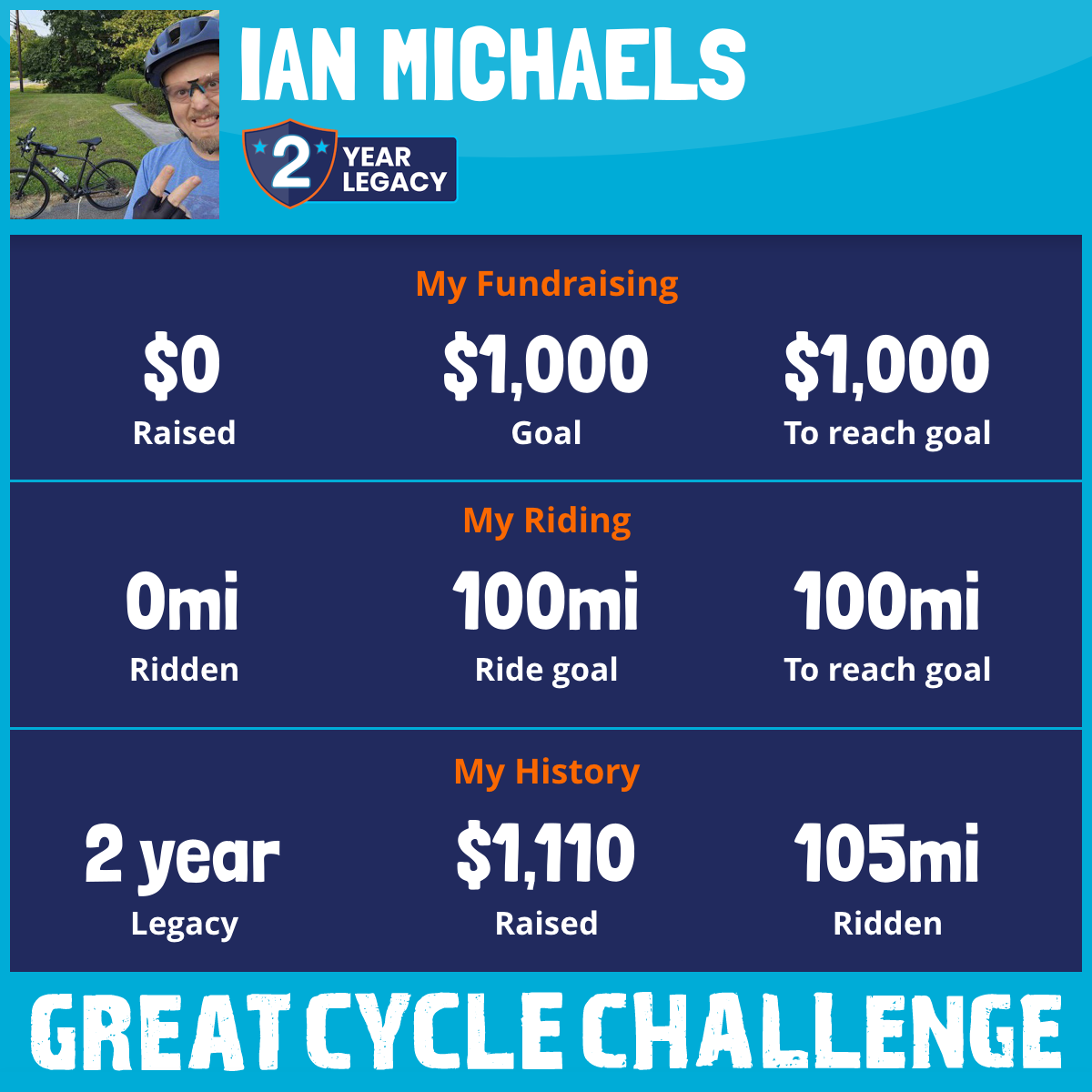 This September, I am taking part in the Great Cycle Challenge to fight kids' cancer! I am going to try to ride 100 miles. It will be tough, but this is a challenge after all!