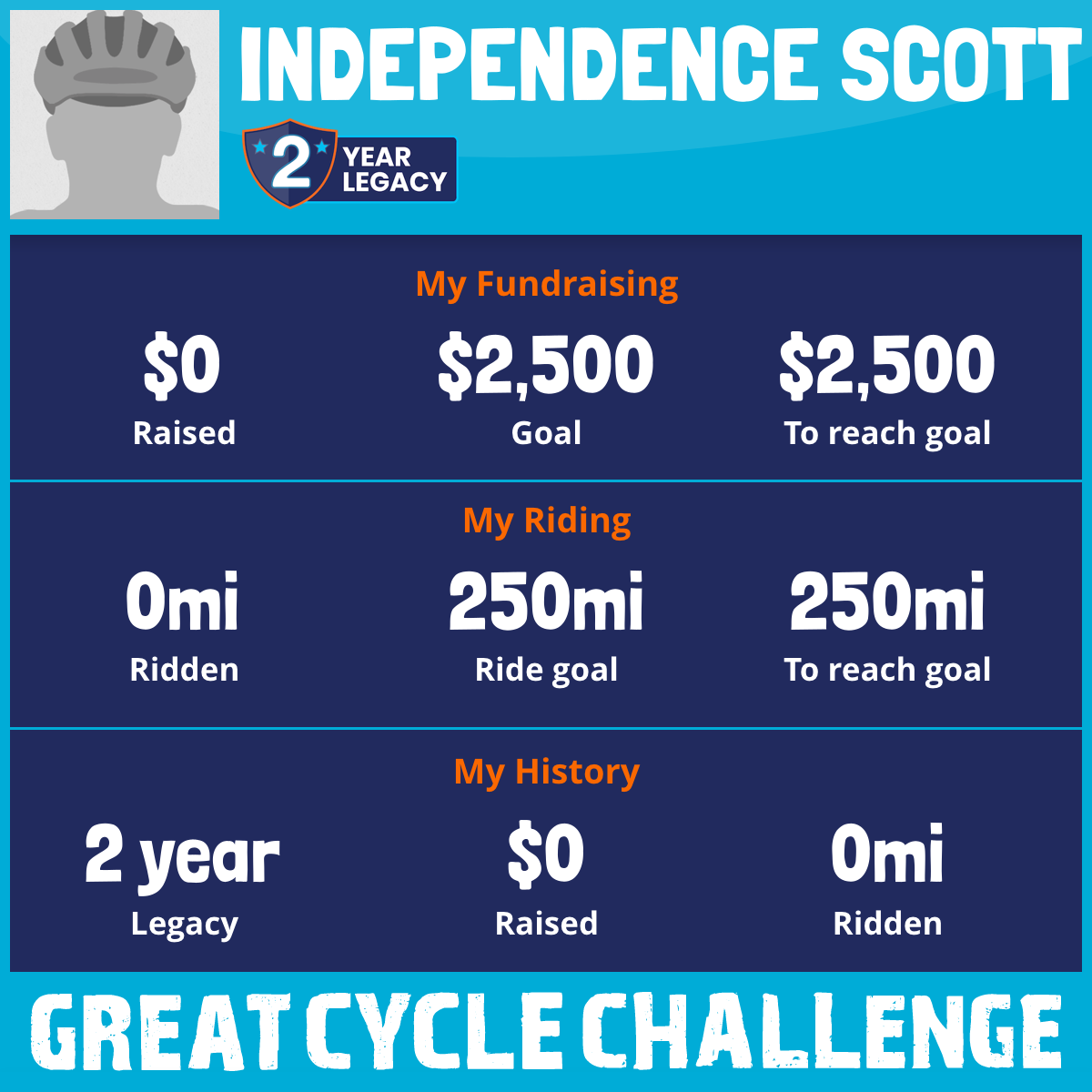 I am riding 250 mi in memory of my sister, Cynthia Scott. Please sponsor me and support my challenge to fight kids' cancer and save little lives.