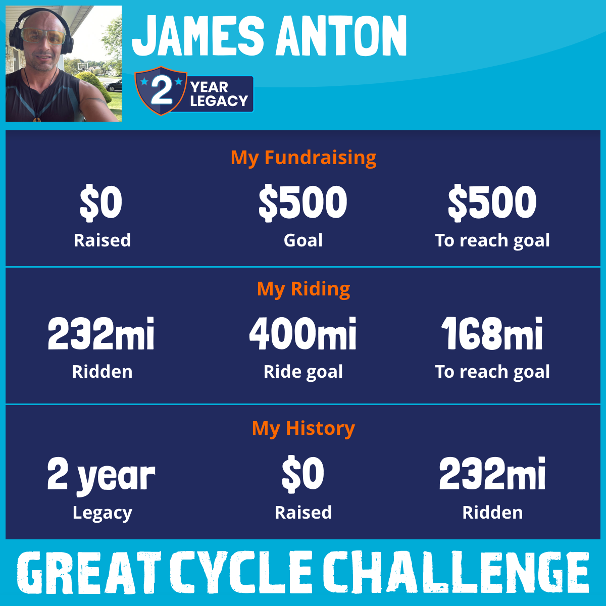I am riding 400 mi for Nobody. Please sponsor me and support my challenge to fight kids' cancer and save little lives.
