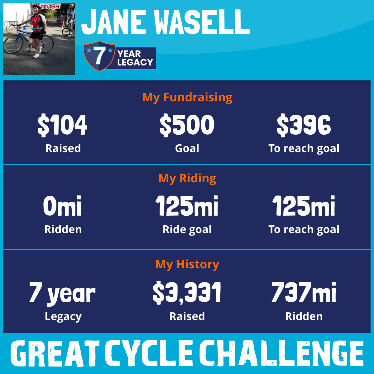 123 mi Ridden$1,127 Raised2025