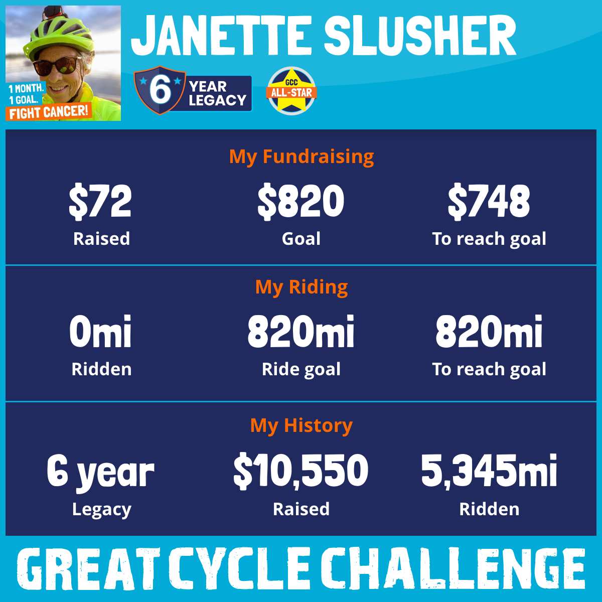 1,004 mi Ridden$3,204 Raised2020