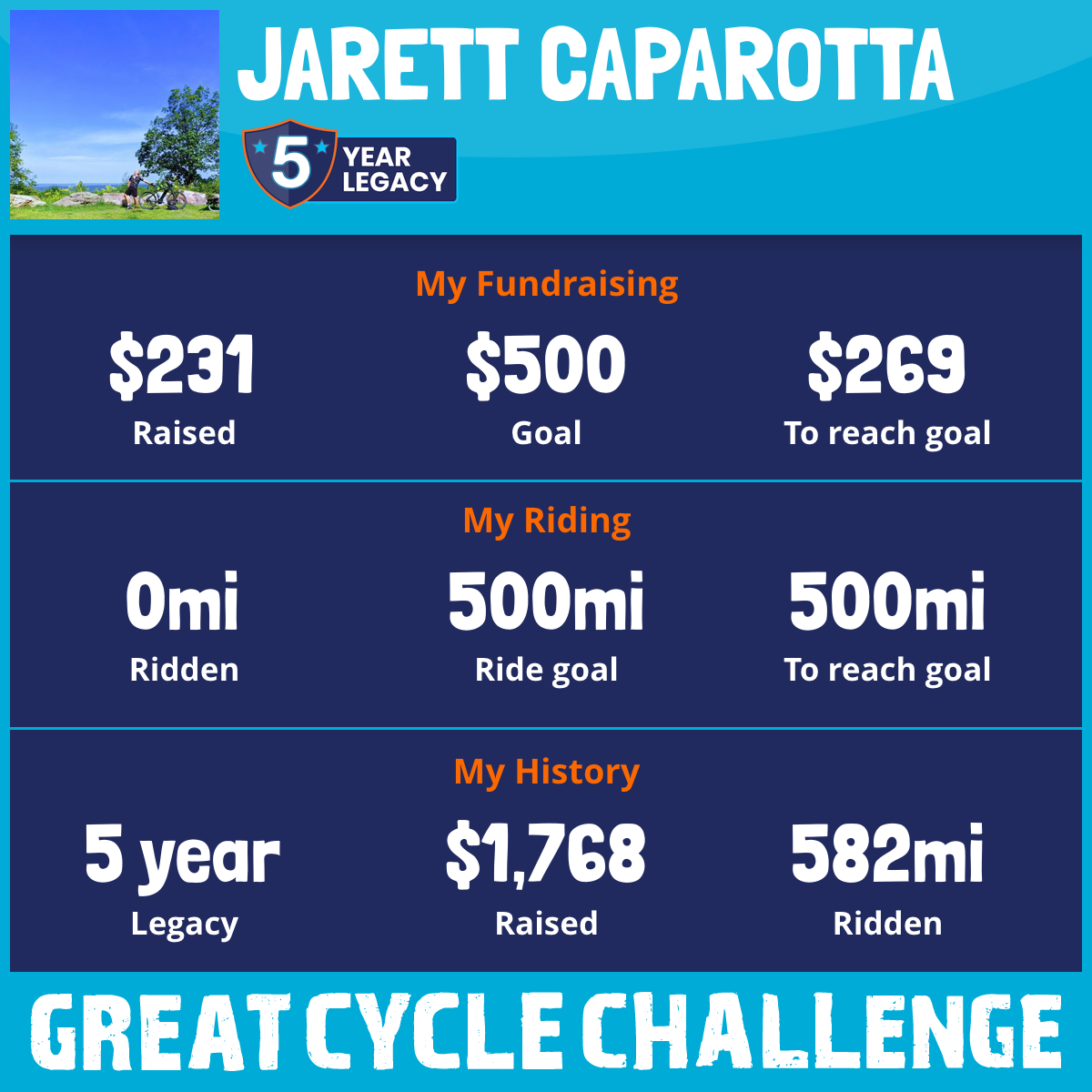 250 mi Ridden$1,089 Raised2021