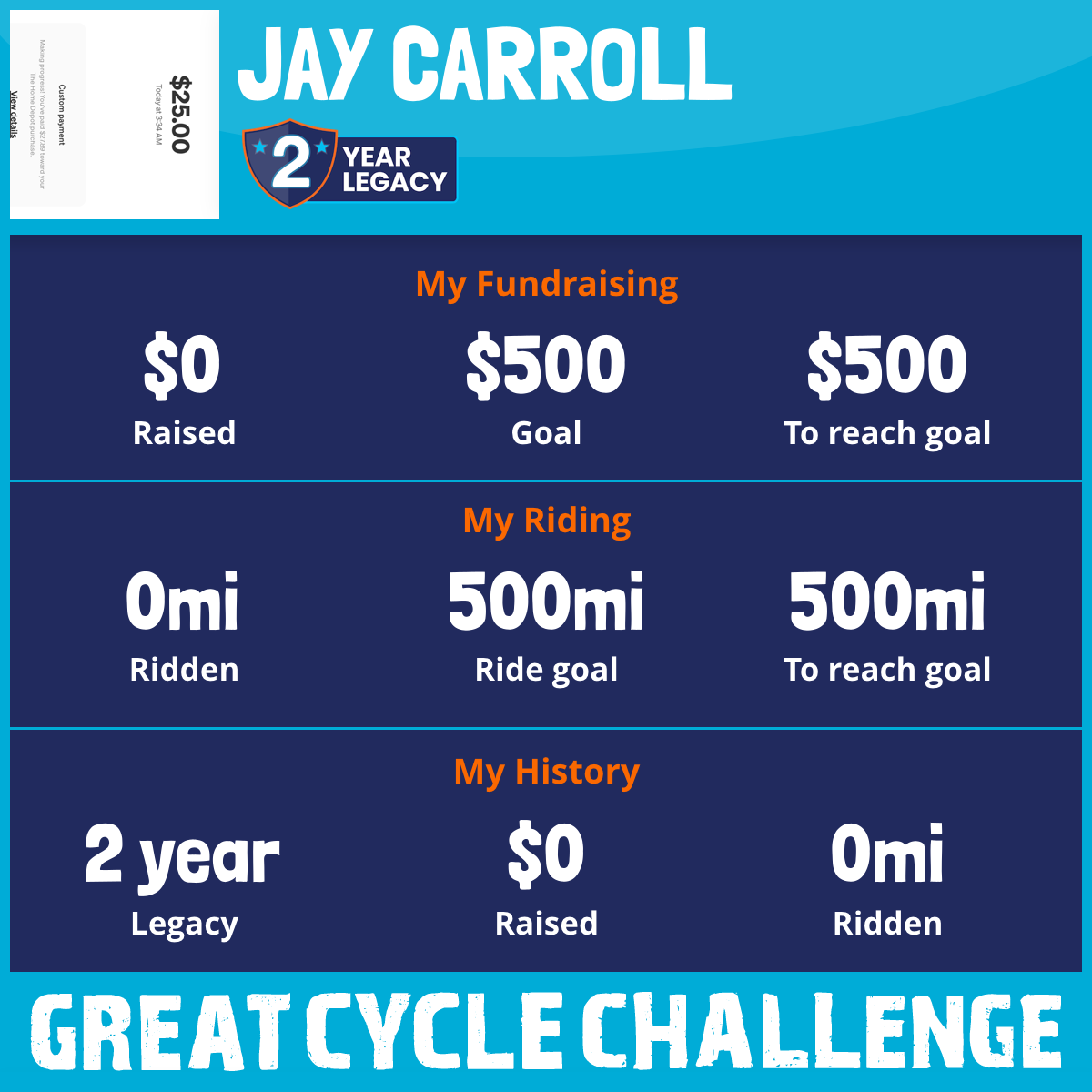 I've raised $0 My goal is $500 Donate Now