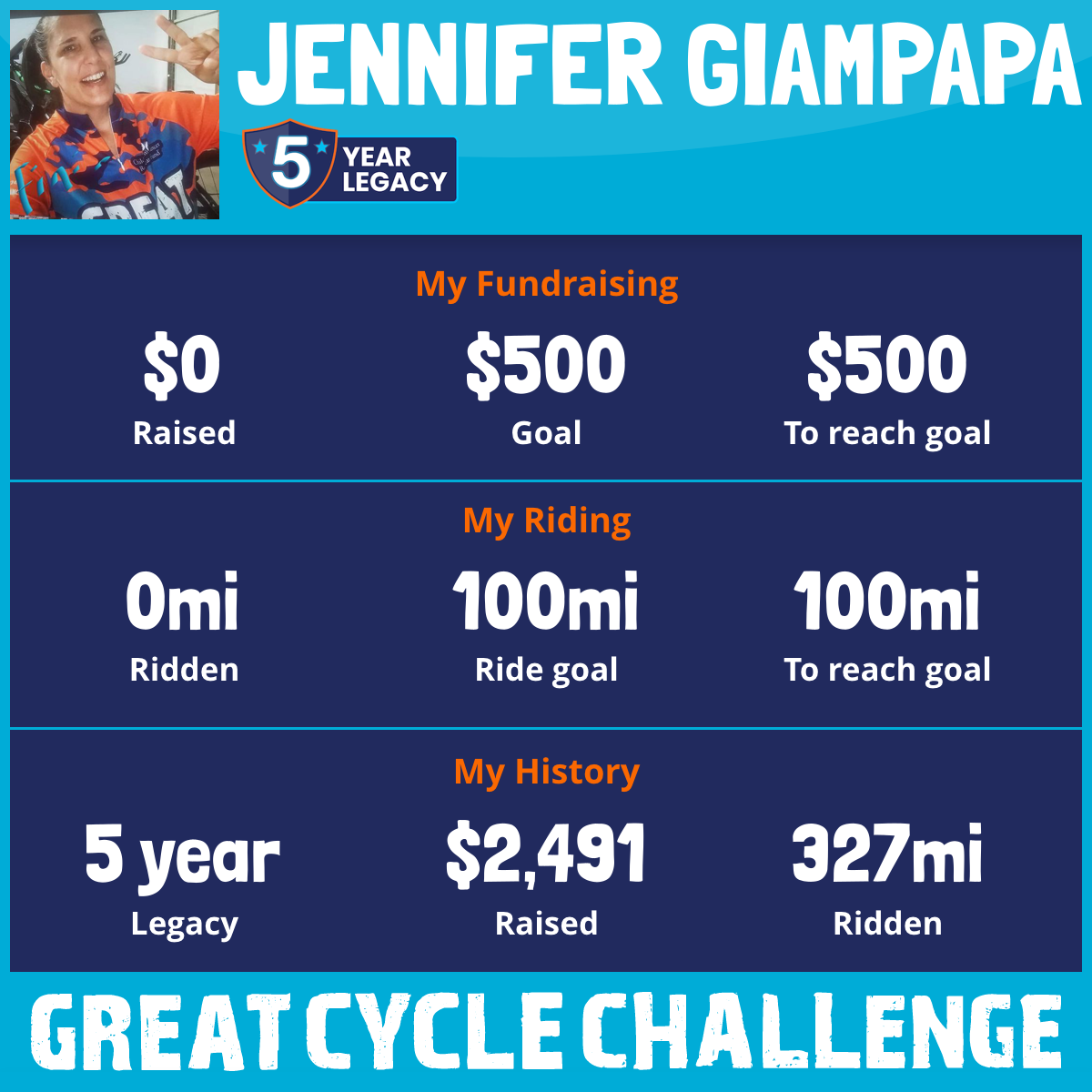 I am riding 100 mi in memory of My Brother, James Giampapa. Please sponsor me and support my challenge to fight kids' cancer and save little lives.