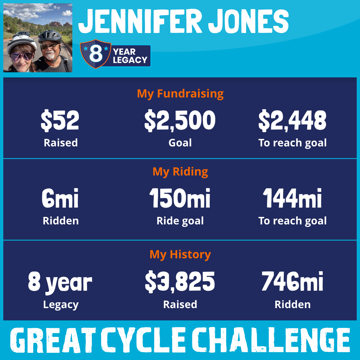 I participate in the Great Cycle Challenge because cancer has touched the lives of people I love. Seeing firsthand how important research, treatment, and care are—not just for patients, but for their families too—has shown me why this cause matters so much. Every mile I ride is my way of helping to fund the research that gives kids and families more hope, more options, and more time together. This challenge is personal to me, and I’m grateful for the chance to ride, raise awareness, and support the fight against childhood cancer.
